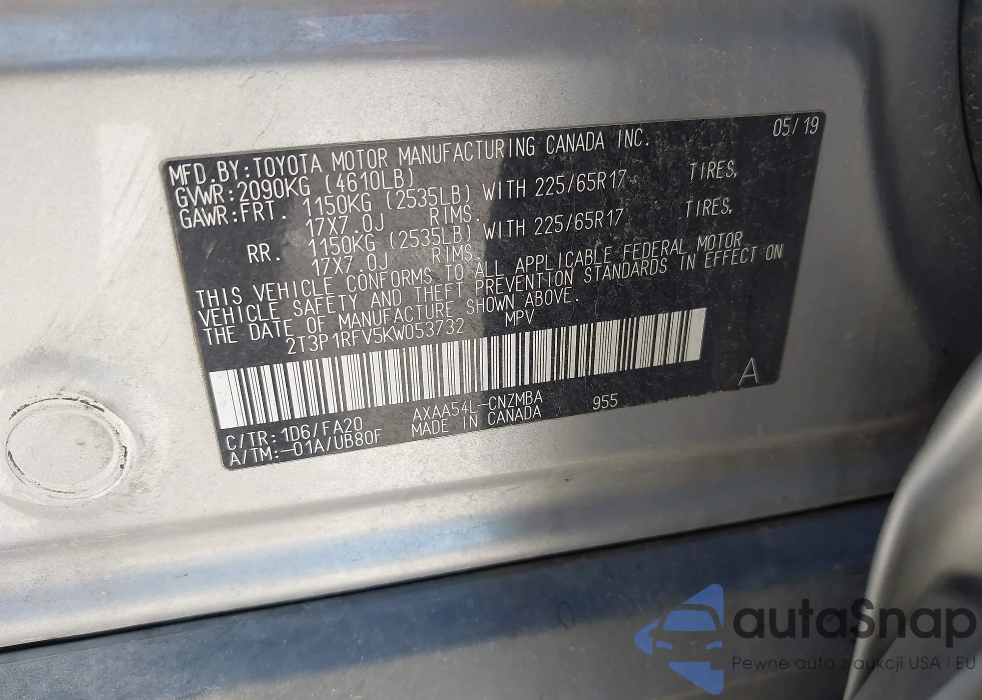 LOT: 43332588 VIN: JTMRWRFV5RD233651