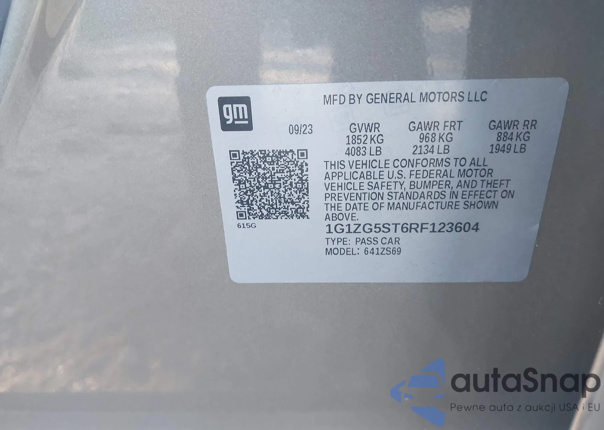 • VIN 1G1ZG5ST6RF123604
