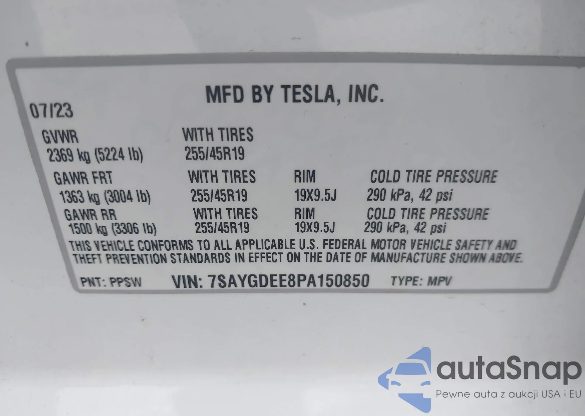 • VIN 7SAYGDEE8PA150850
