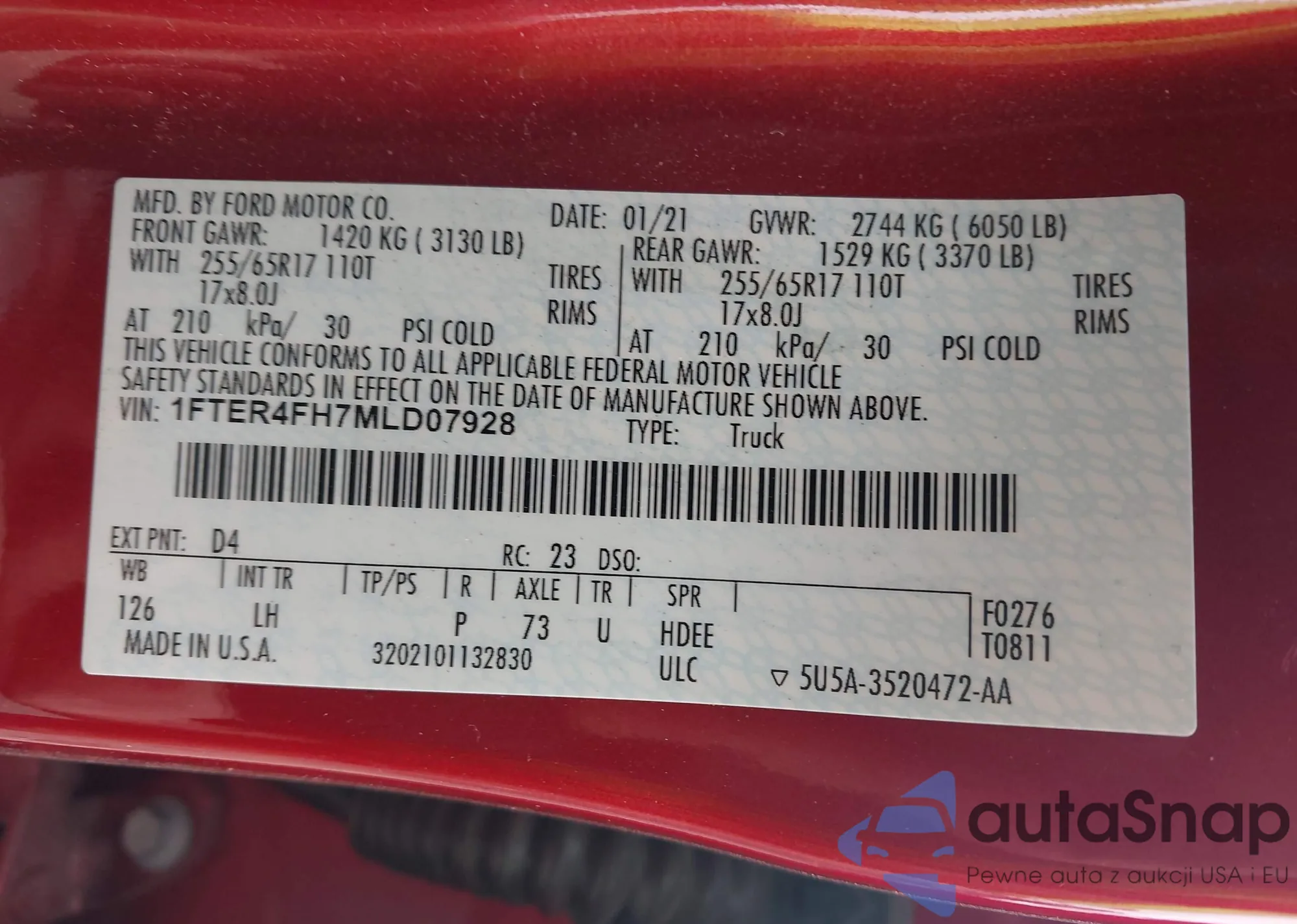 LOT: 43650065 VIN: 1FTER4FH7MLD07928