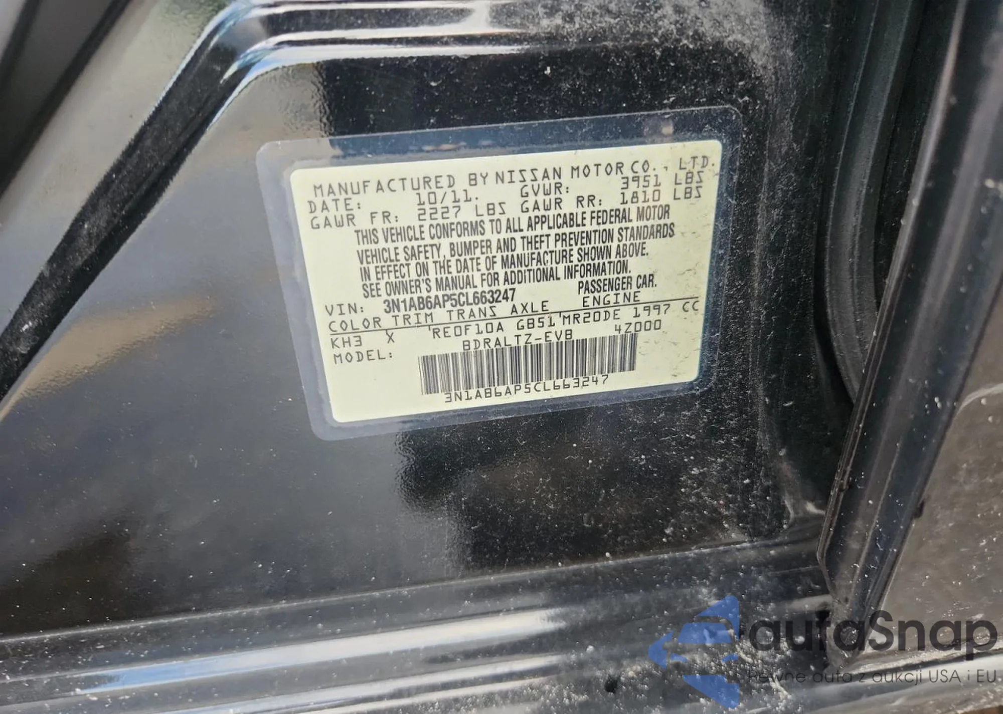 • VIN 3N1AB6AP5CL663247