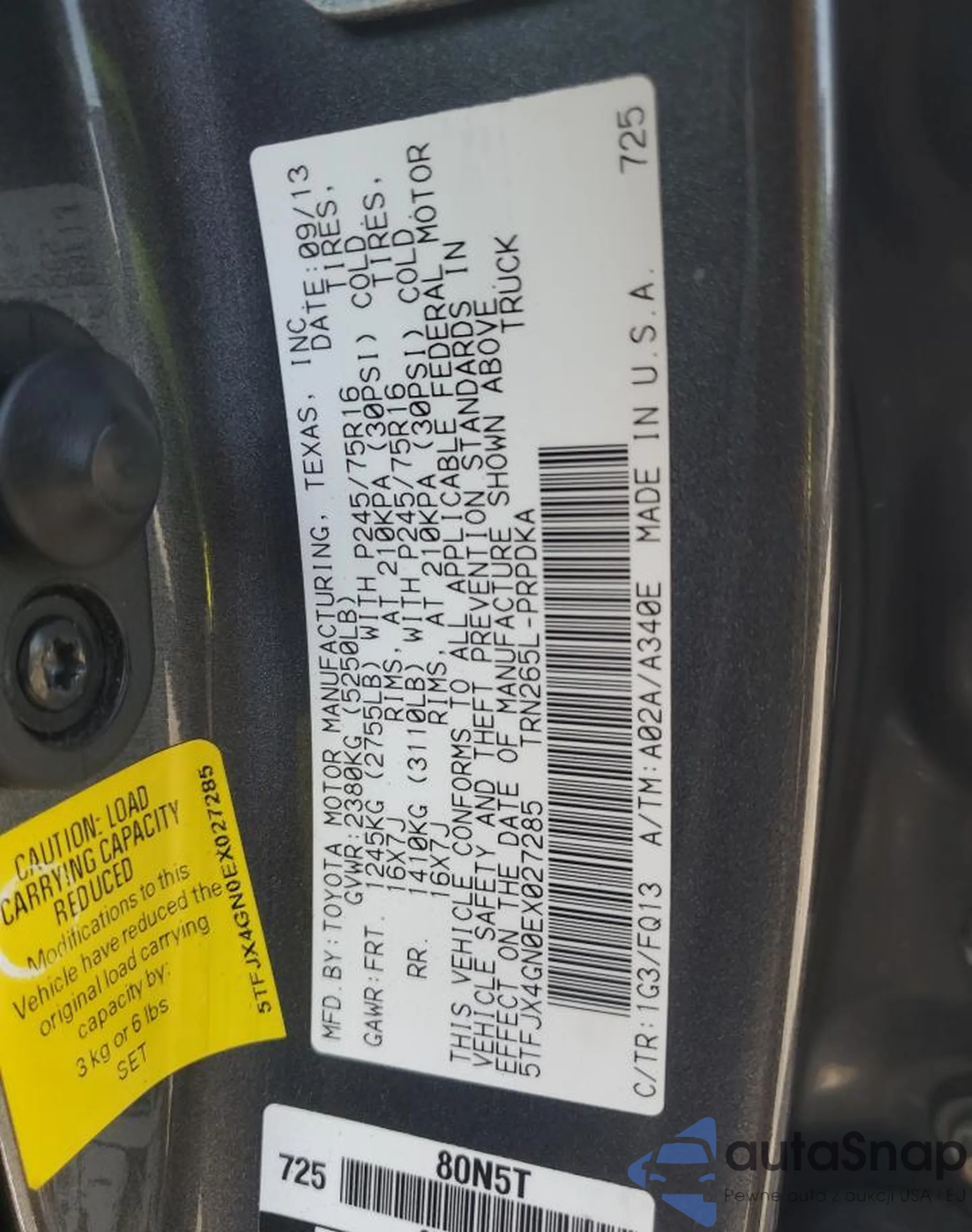 • VIN 5TFJX4GN0EX027285