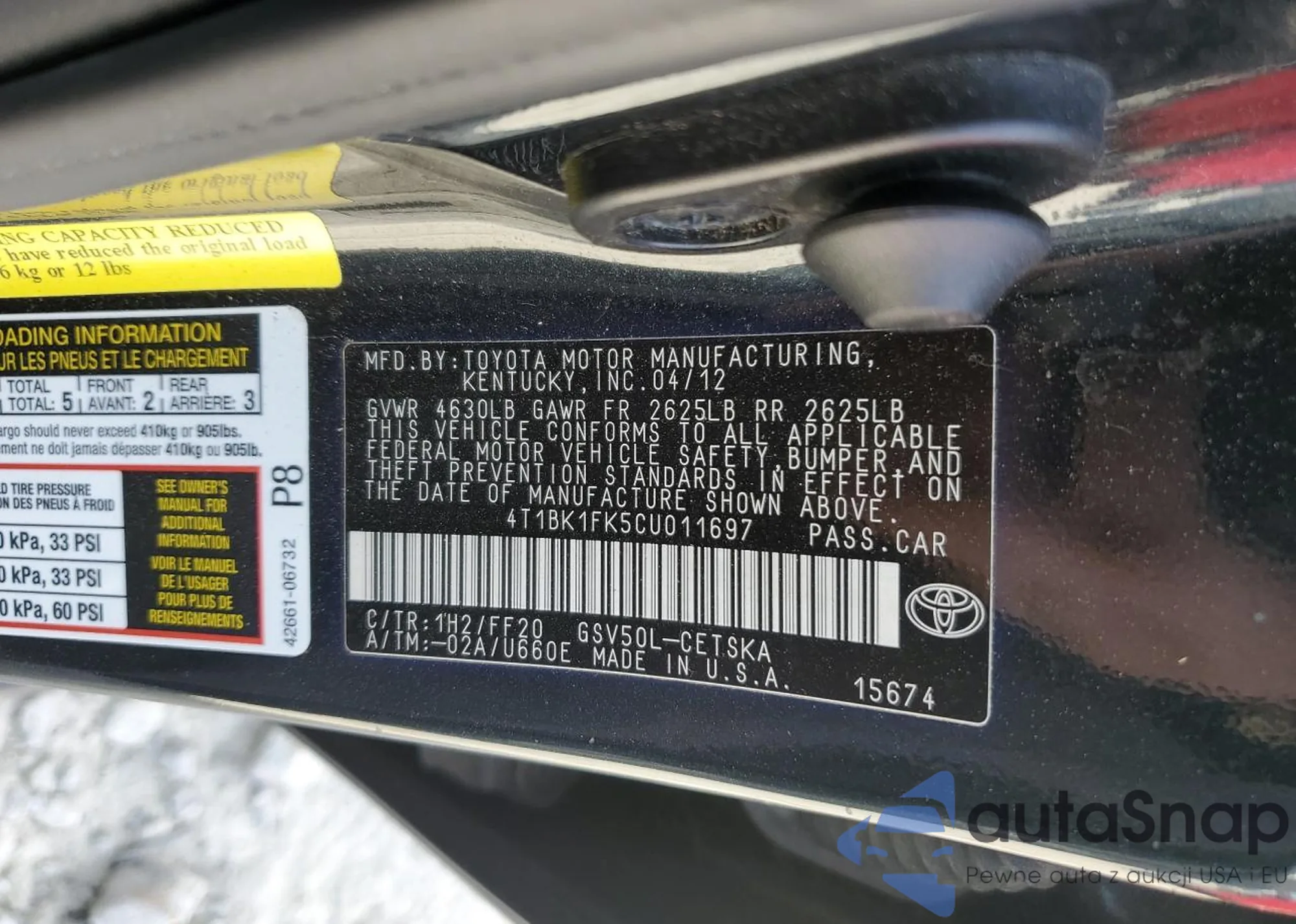 • VIN 4T1BK1FK5CU011697