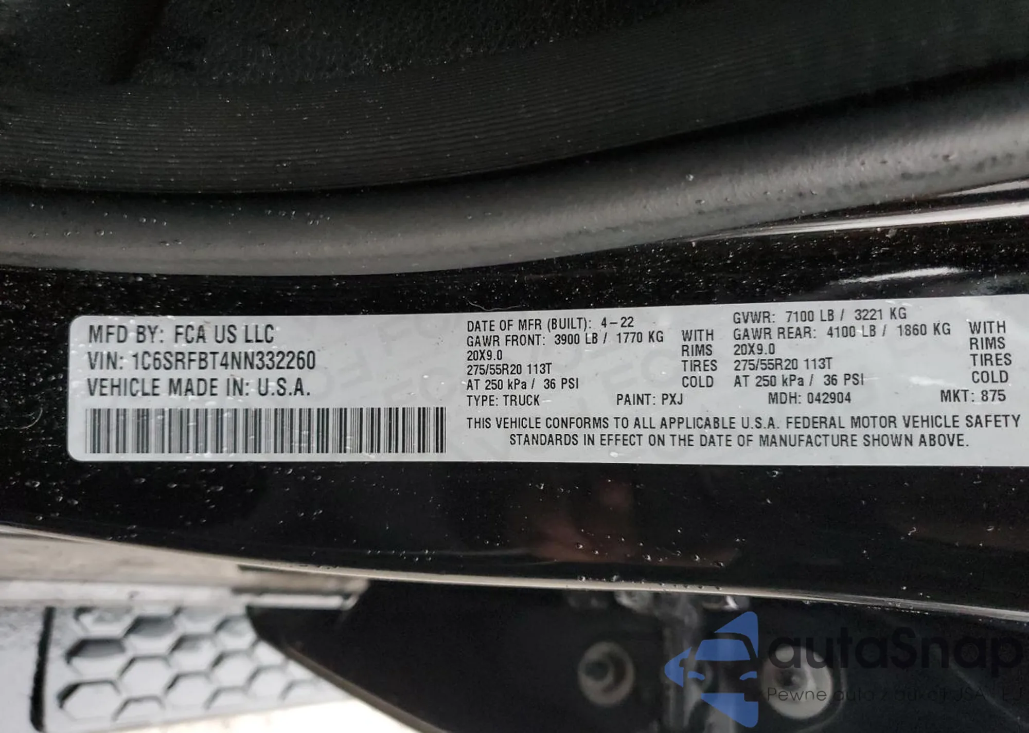 • VIN 1C6SRFBT4NN332260