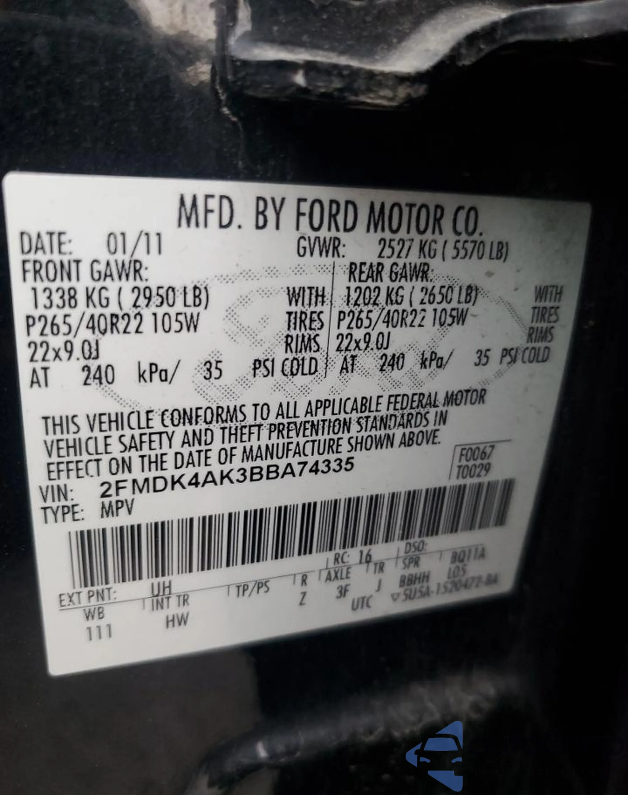 • VIN 2FMDK4AK3BBA74335