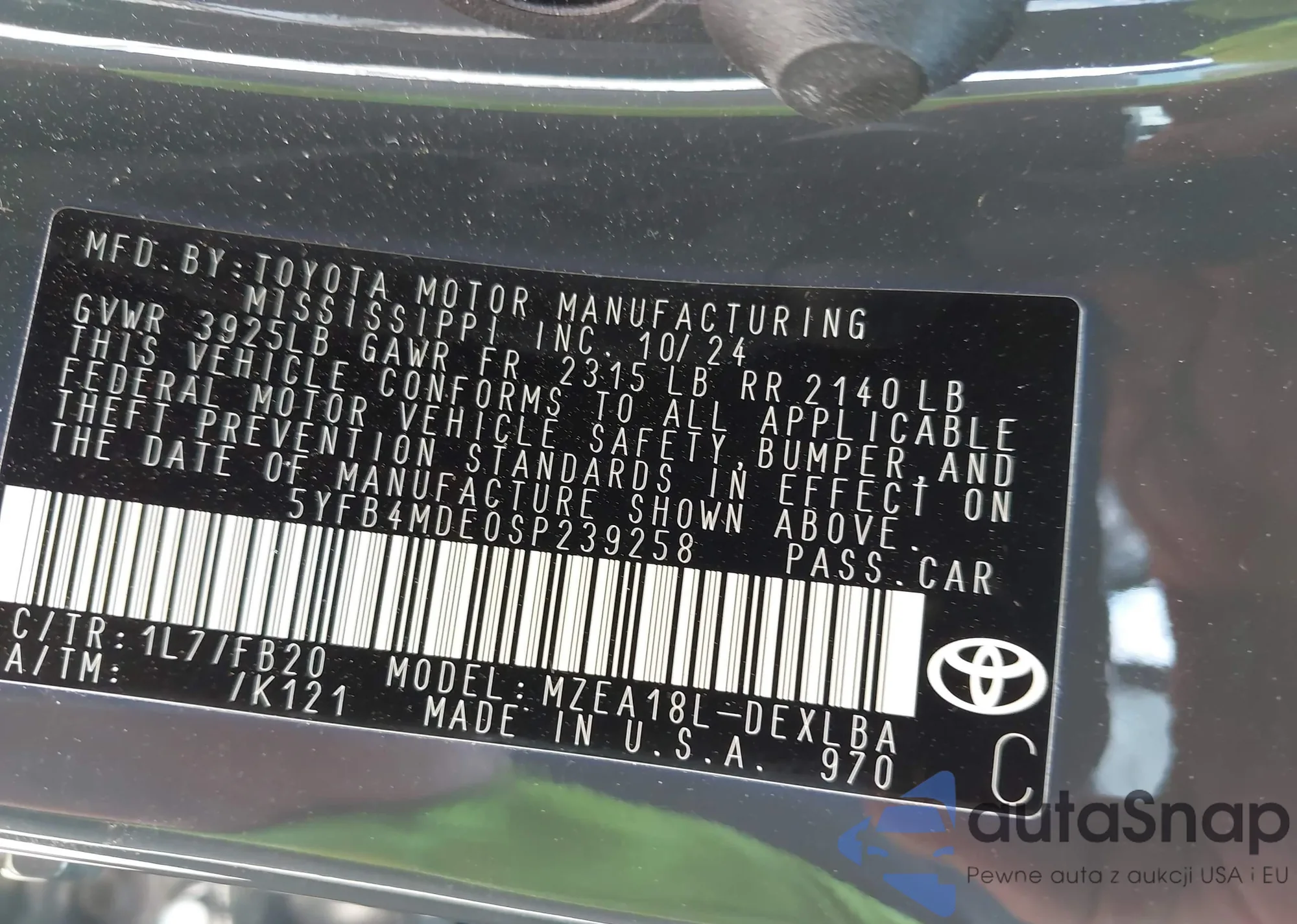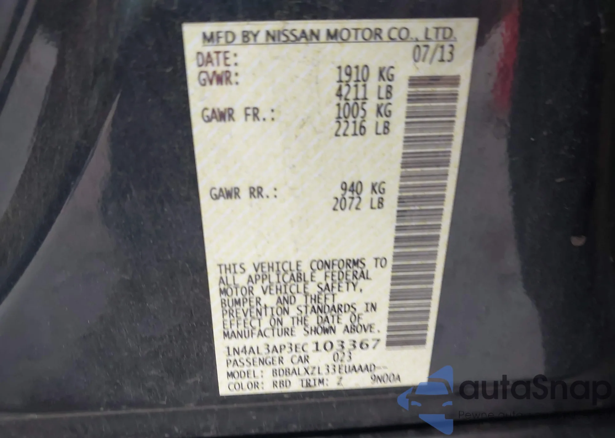• VIN 1N4BL4DVXSN371014