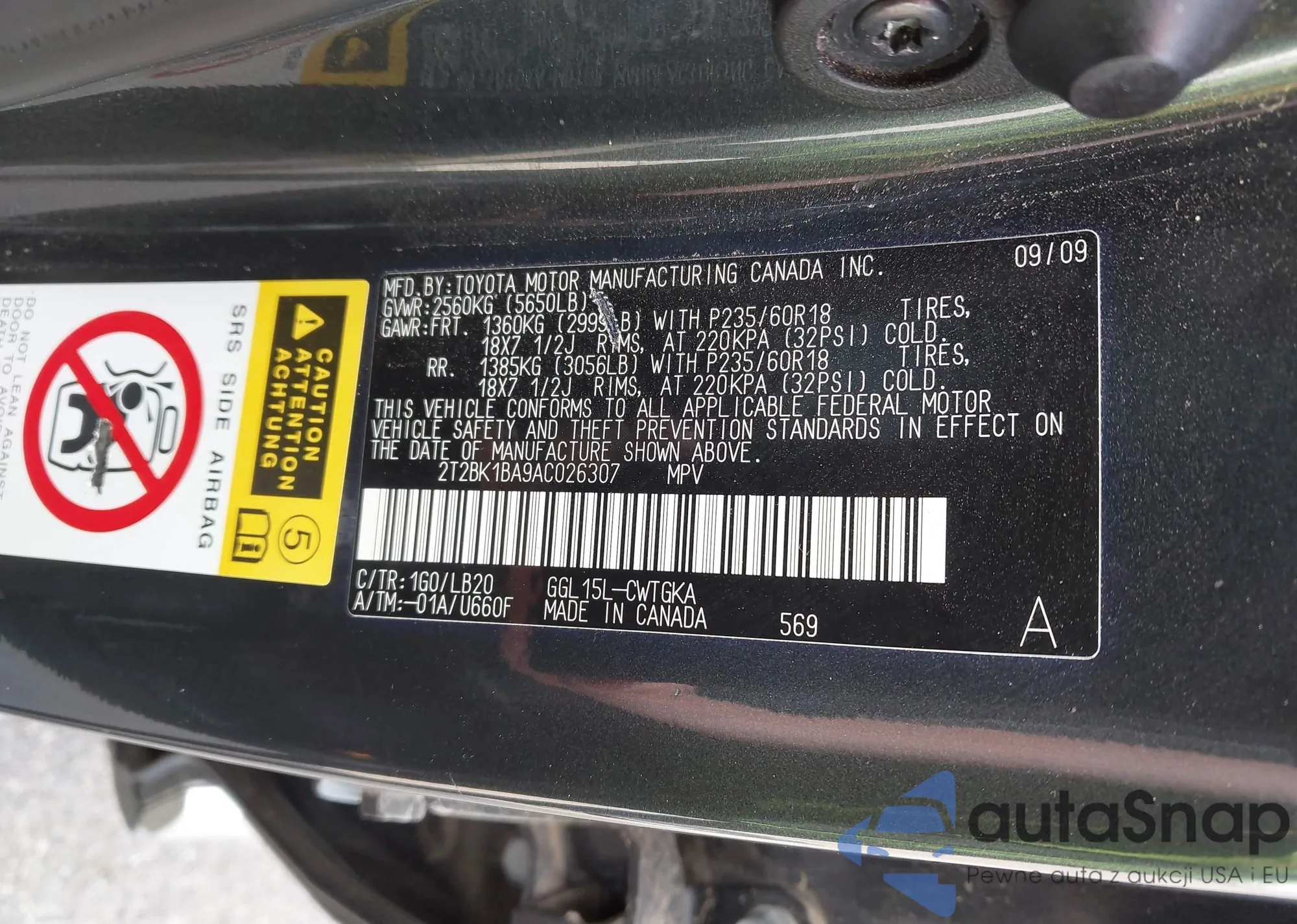 LOT: 43186006 VIN: 2T2BK1BA9AC026307