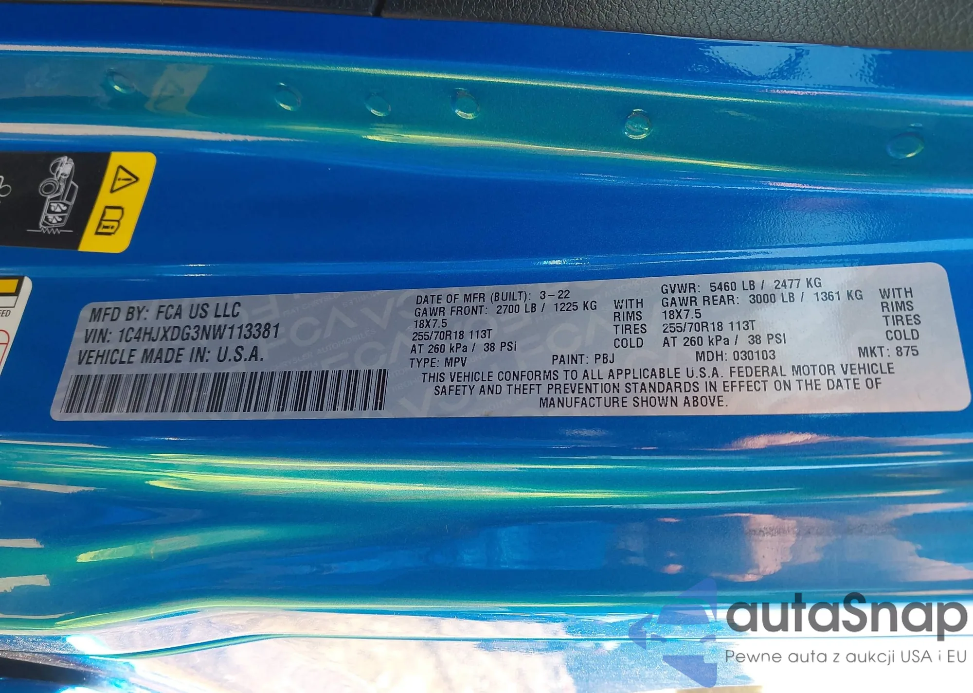 • VIN 1C4HJXDG3NW113381