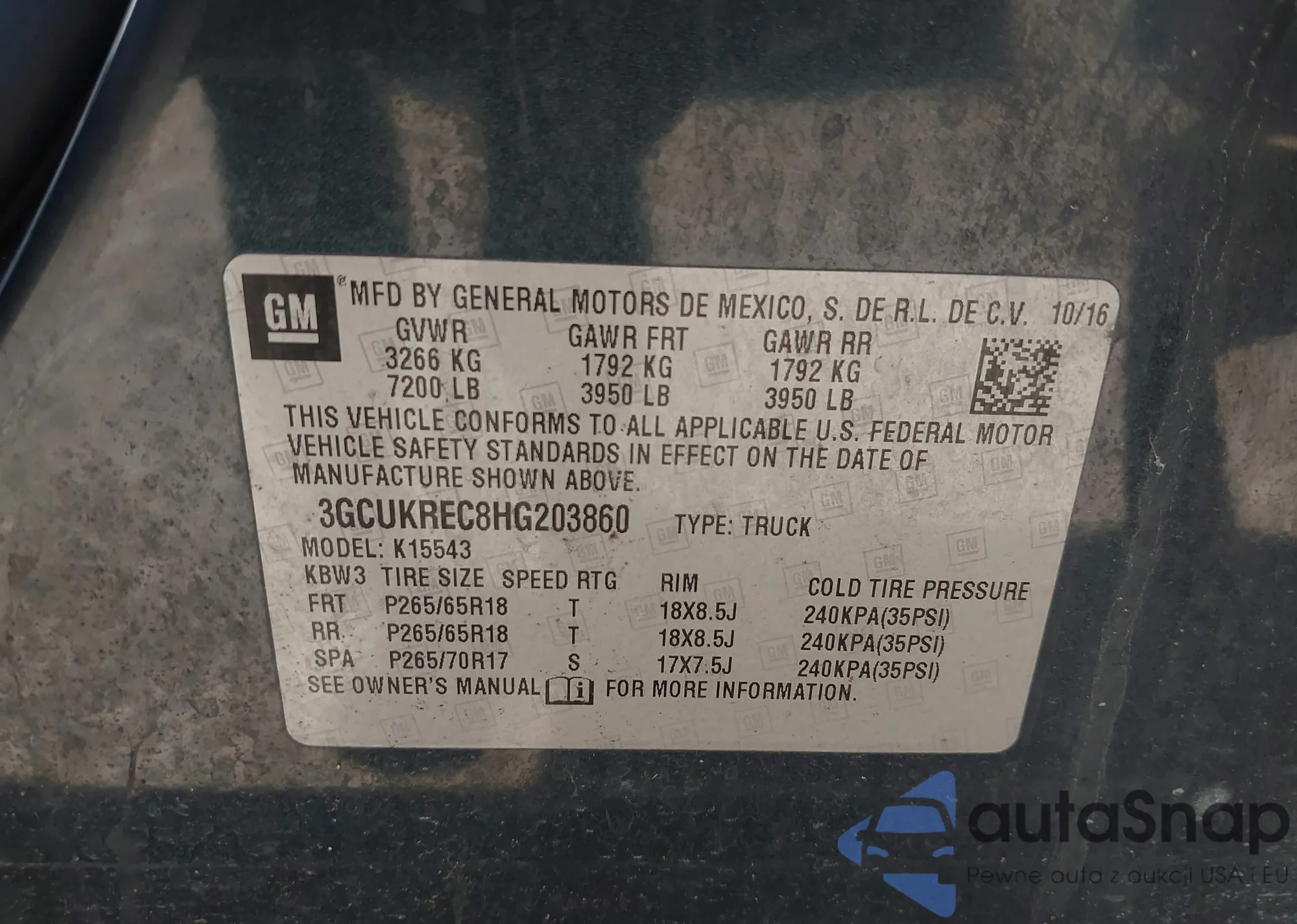 • VIN 3GCUKREC8HG203860