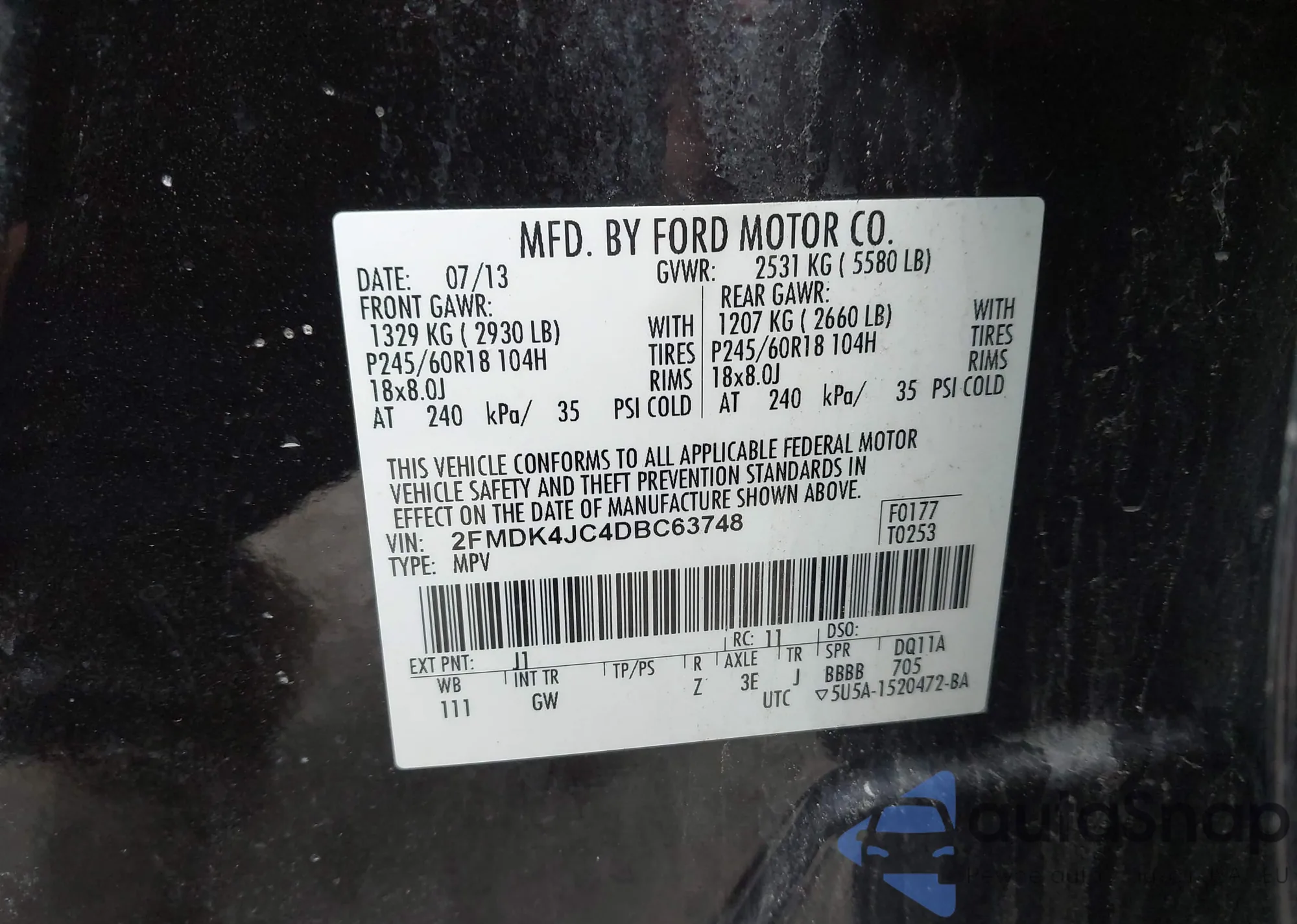 • VIN 2FMDK4JC4DBC63748