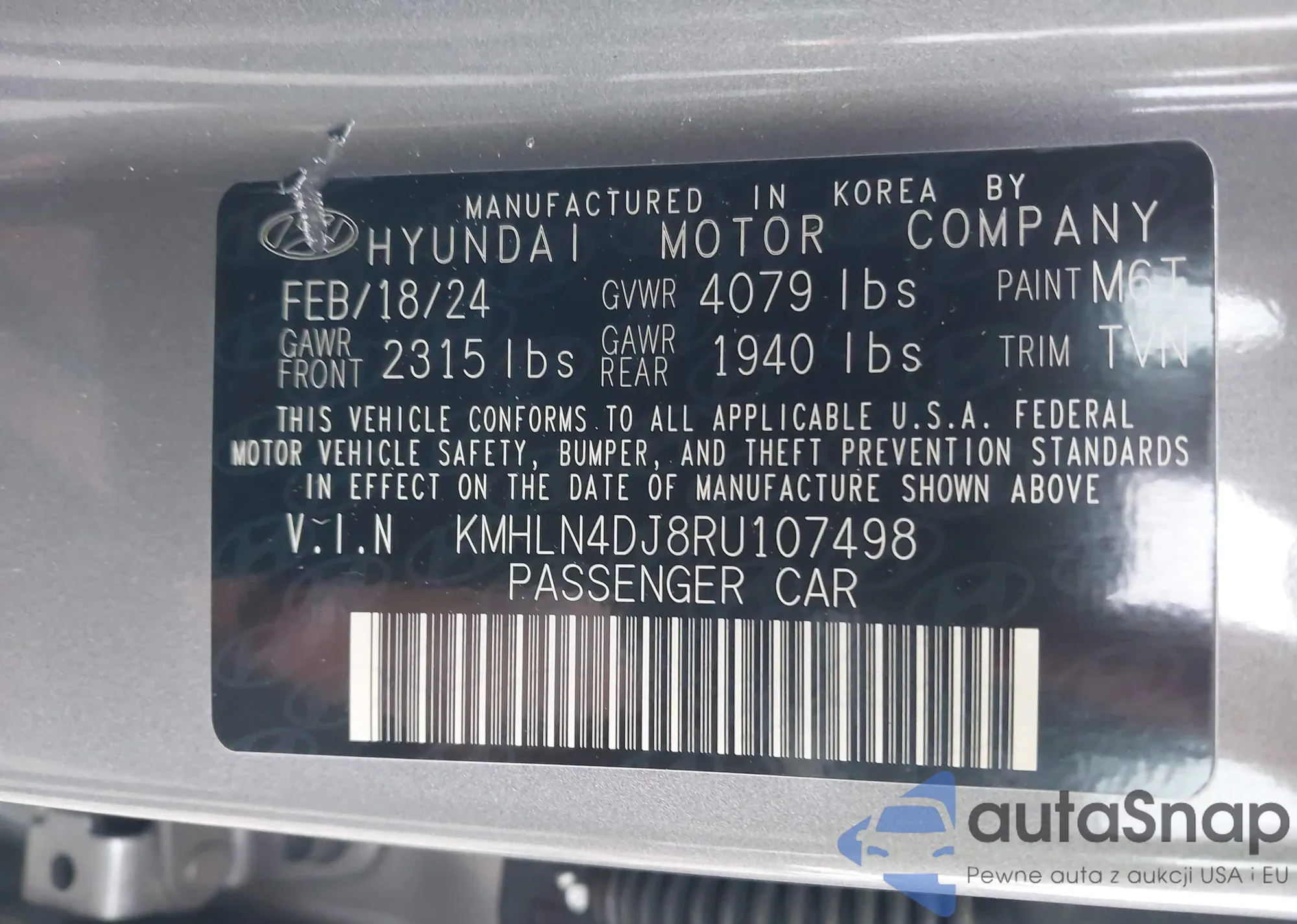 LOT: 43196235 VIN: KMHLN4DJ8RU107498