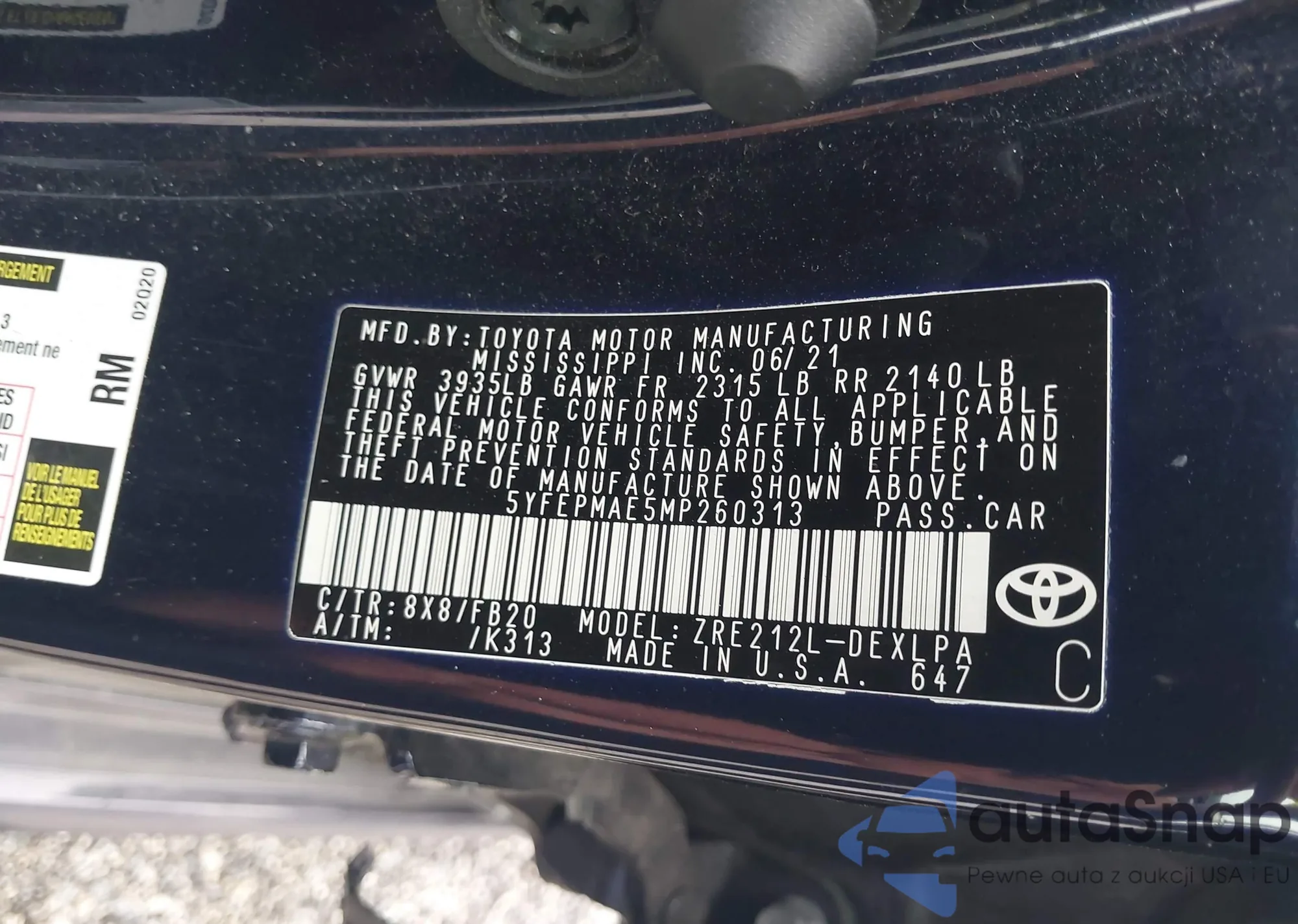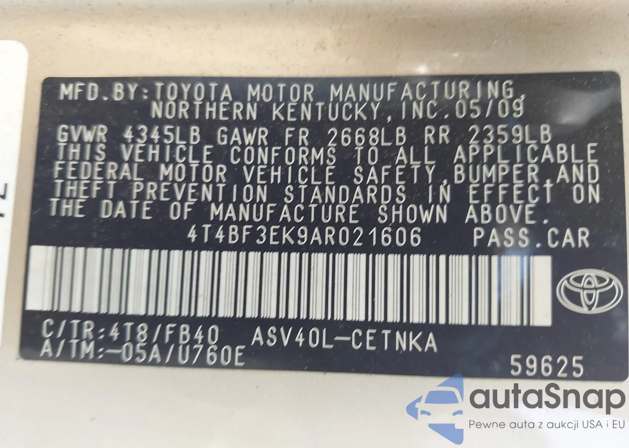 • VIN 4T4BF3EK9AR021606
