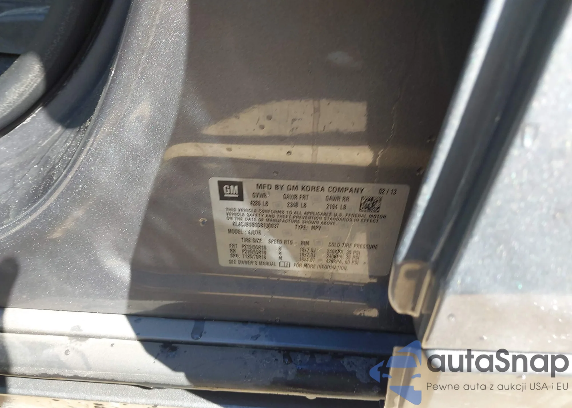 LOT: 43455561 VIN: KL4CJBSB1DB130037