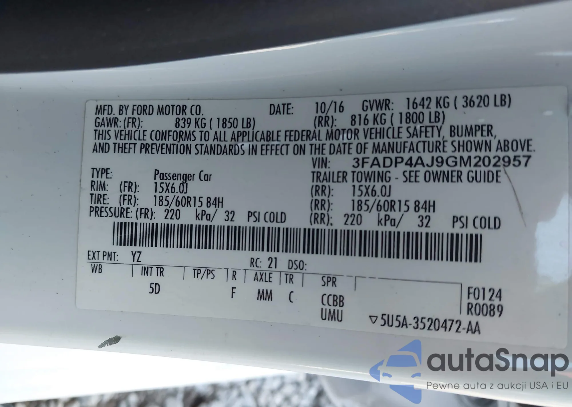 • VIN 3FADP4AJ9GM202957