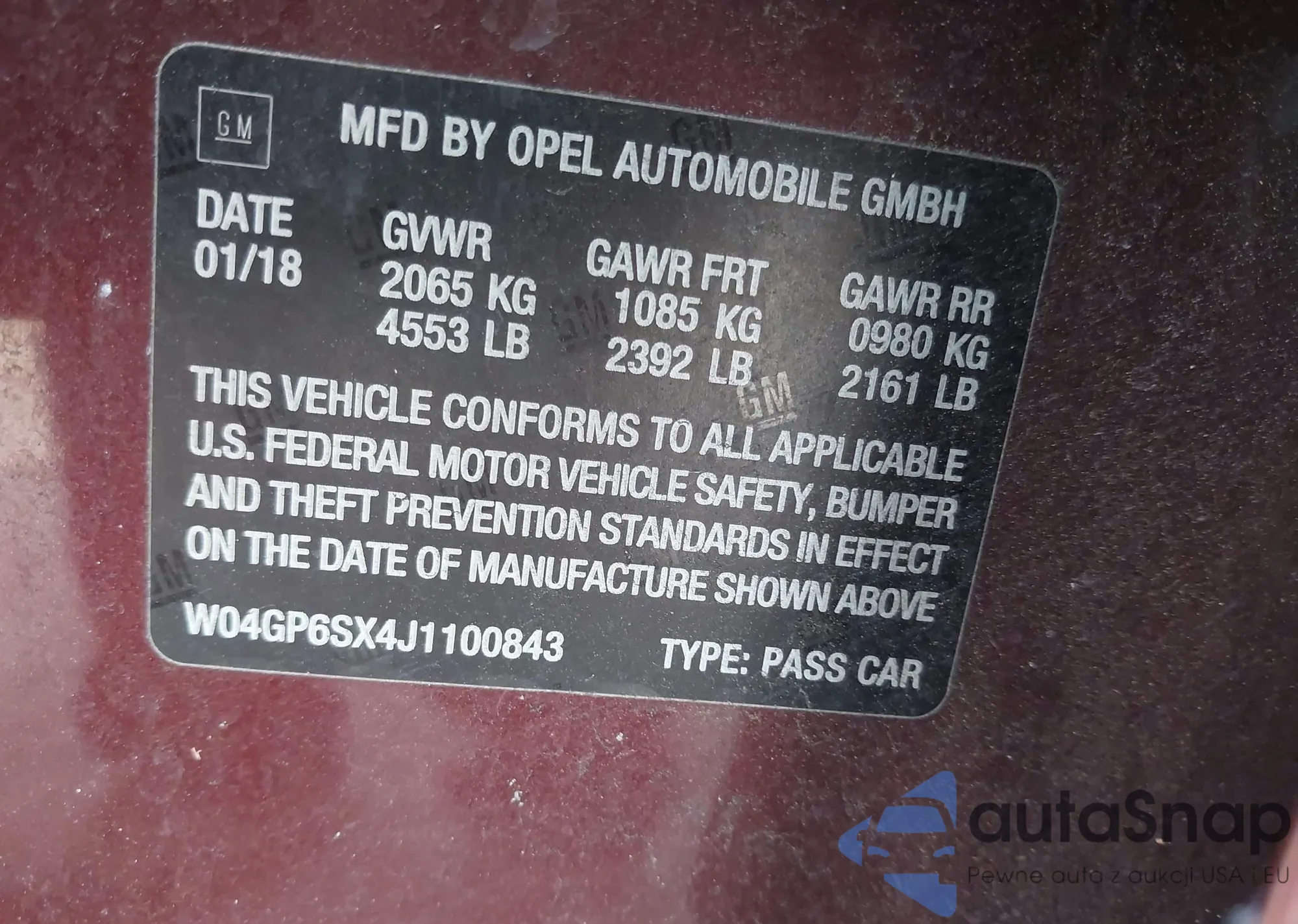 • VIN W04GP6SX4J1100843