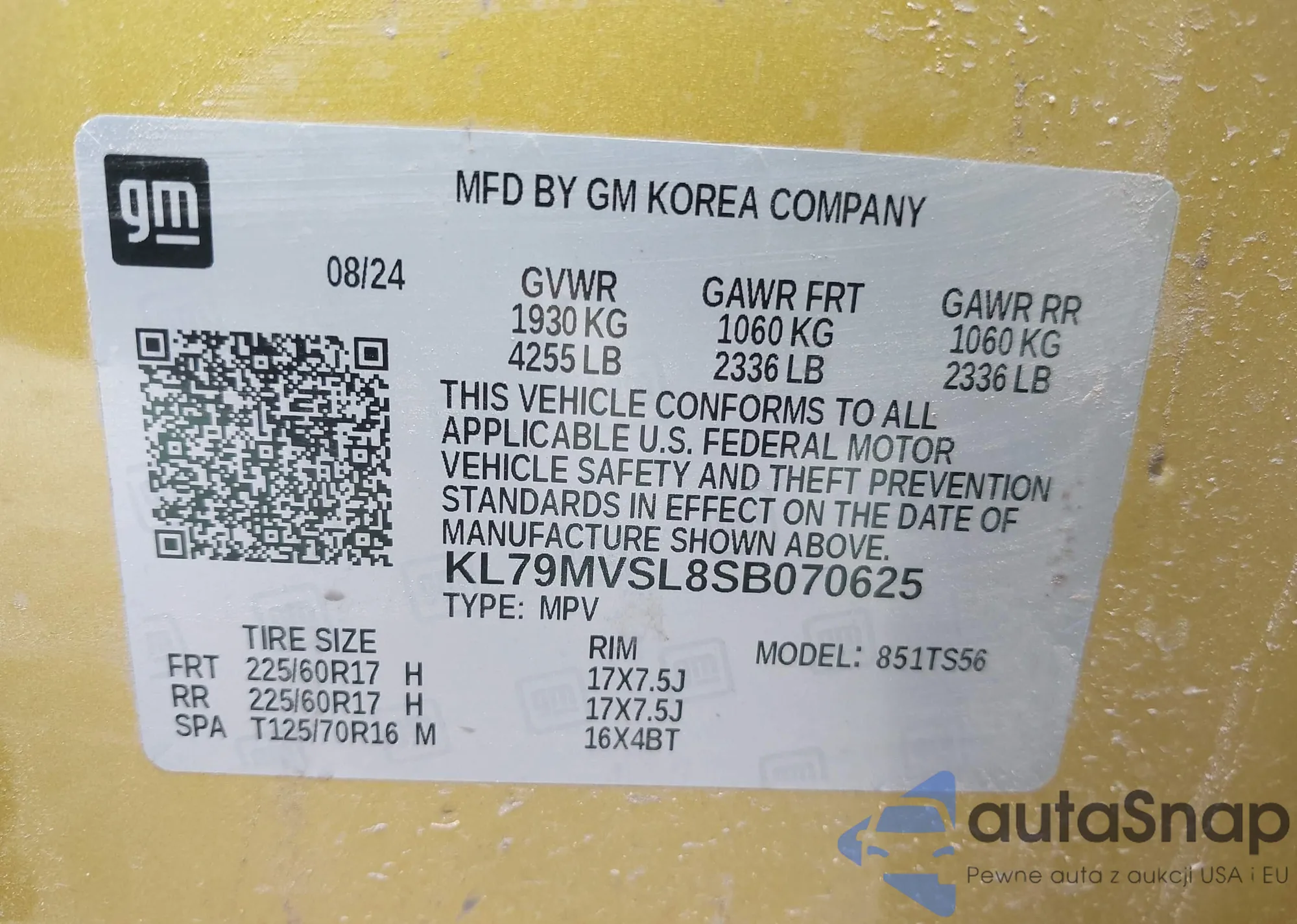 • VIN KL79MVSL8SB070625