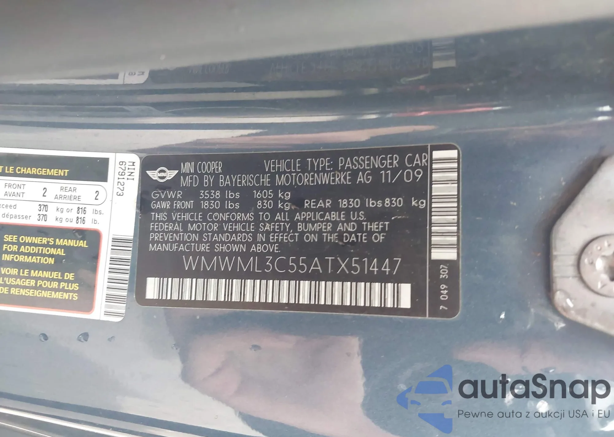 • VIN WMWML3C55ATX51447