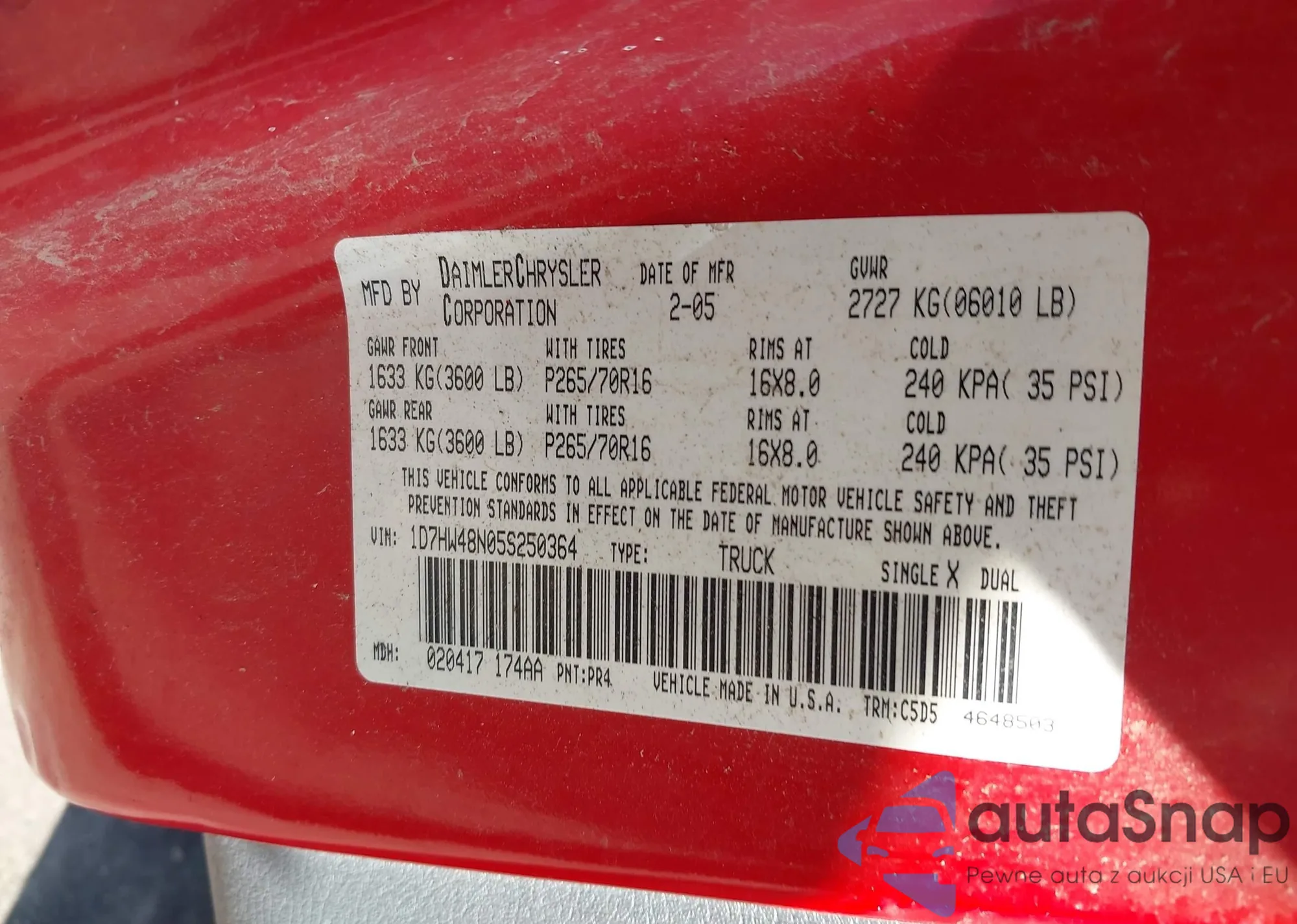 • VIN 5N1AR2MN8DC659536