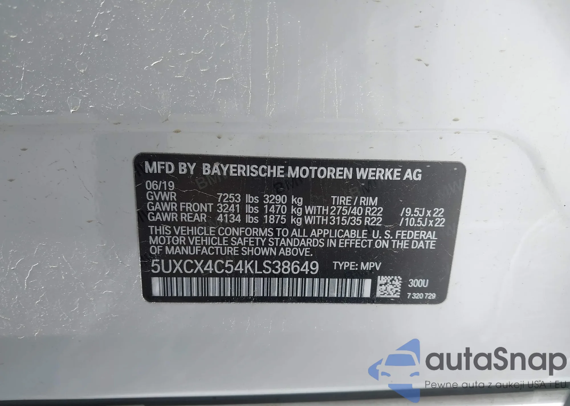 • VIN 5UXCX4C54KLS38649