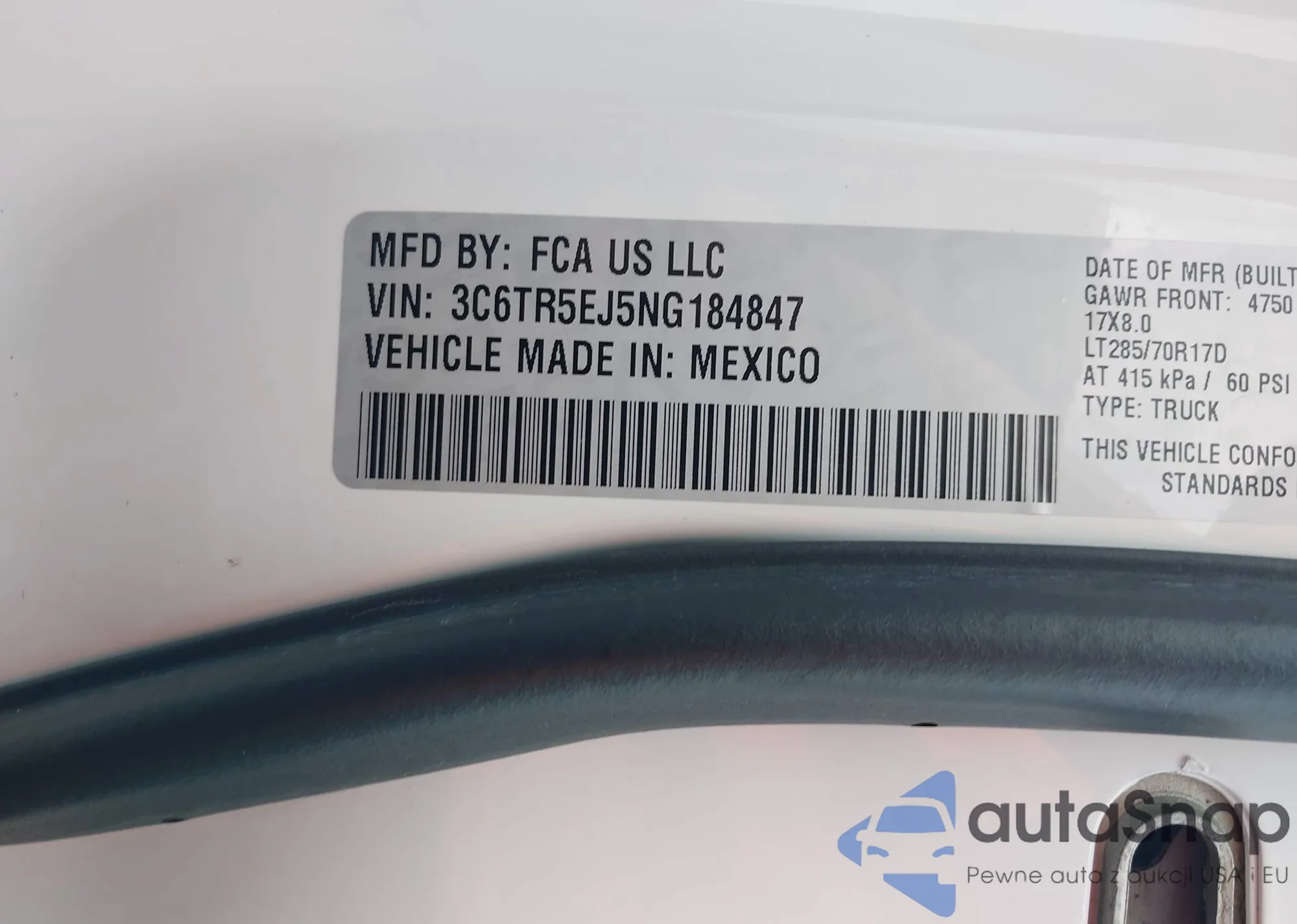 • VIN 3C6TR5EJ5NG184847