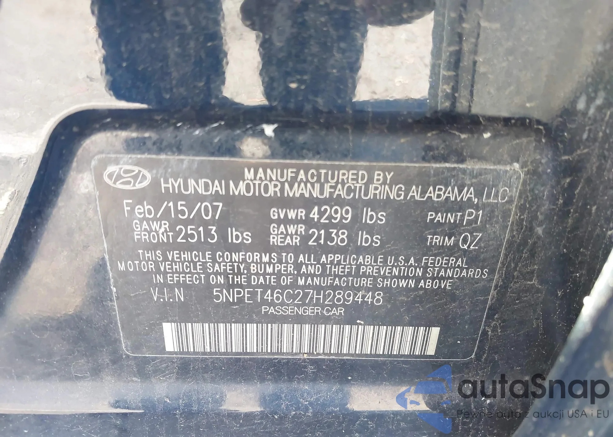 • VIN 5NPET46C27H289448