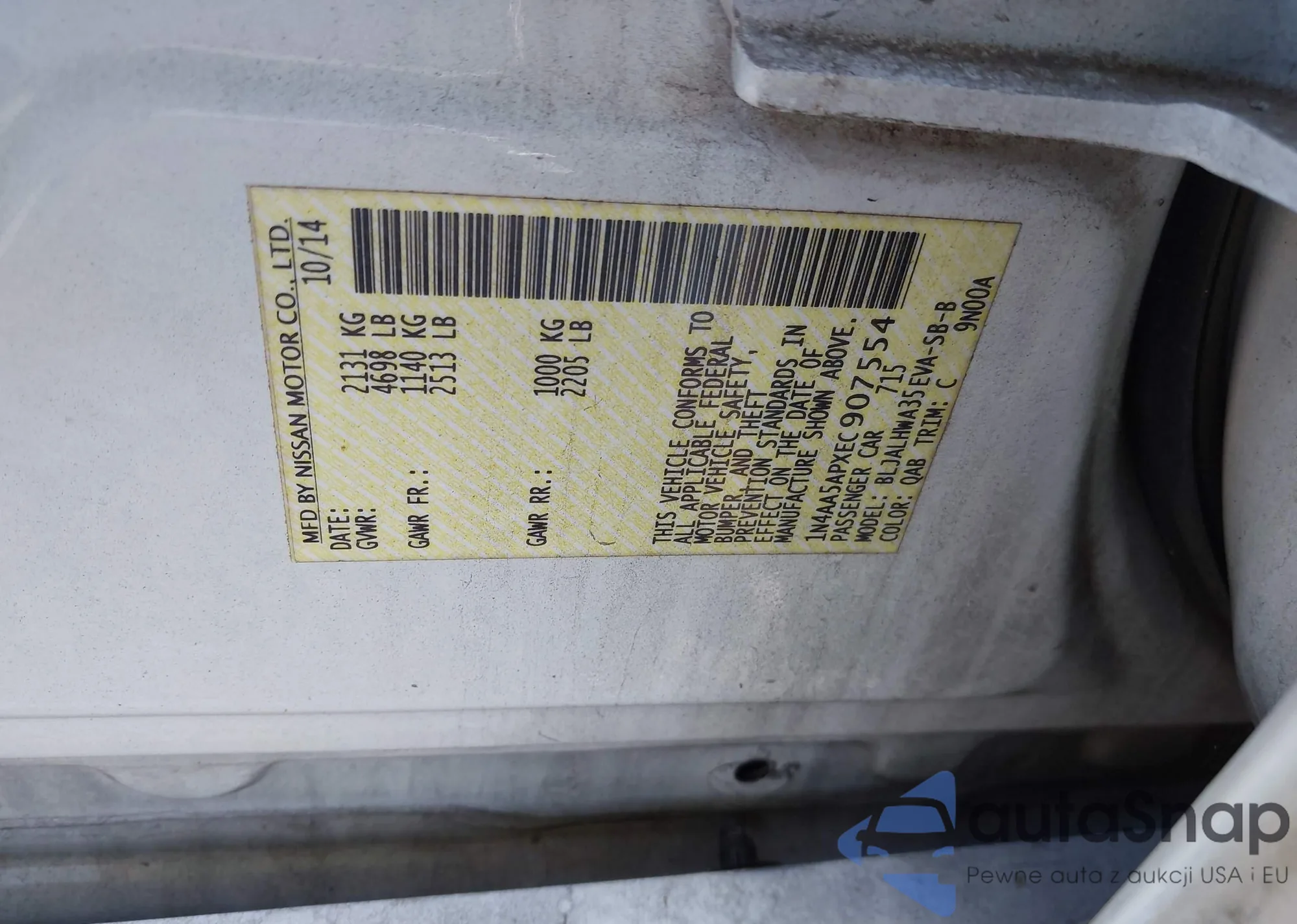 • VIN 1N4AA5APXEC907554