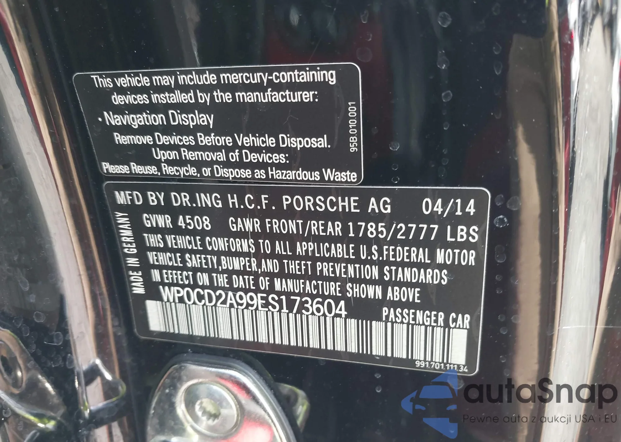 LOT: 43559622 VIN: WP0CD2A99ES173604