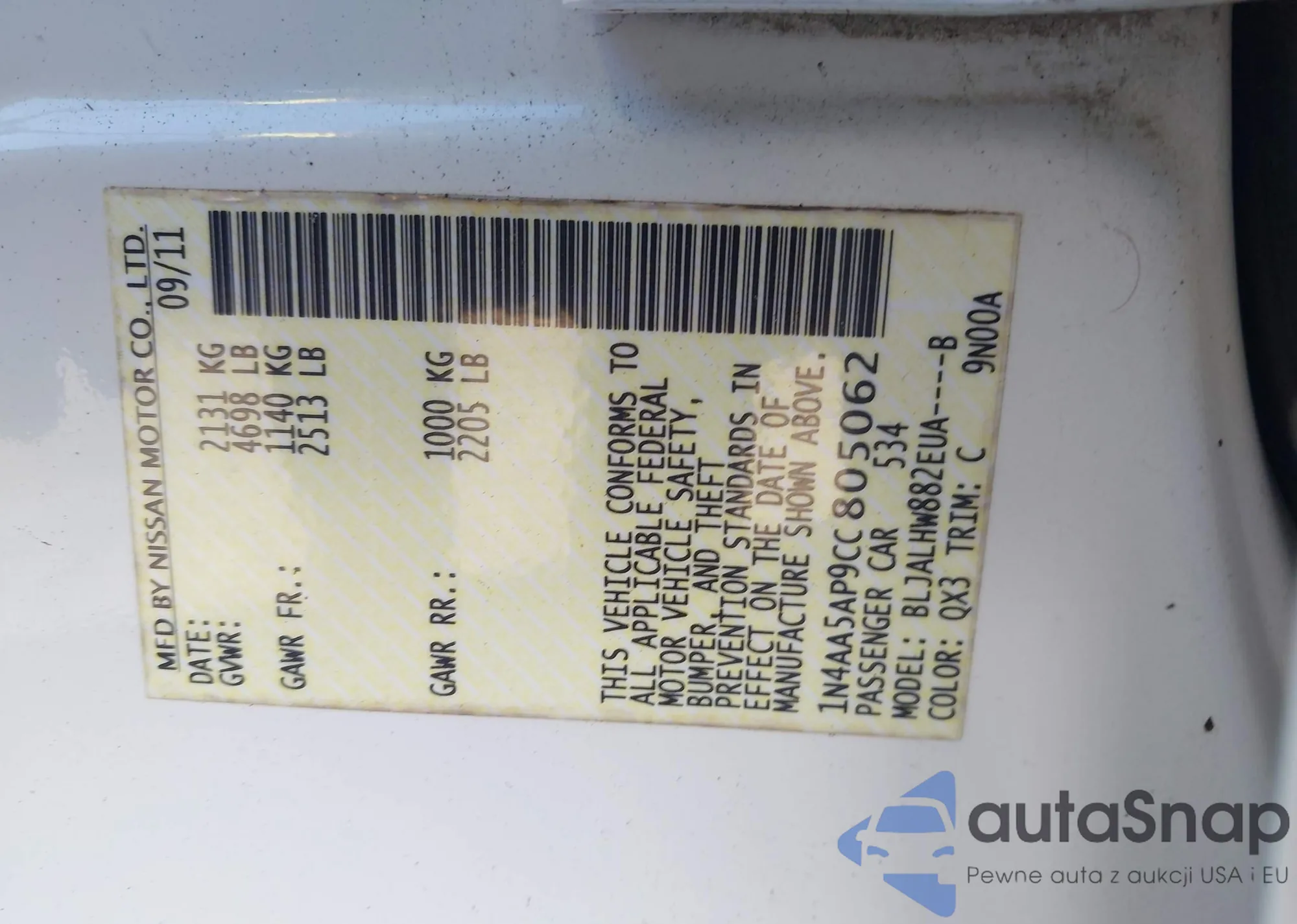 • VIN 1N4AA5AP9CC805062