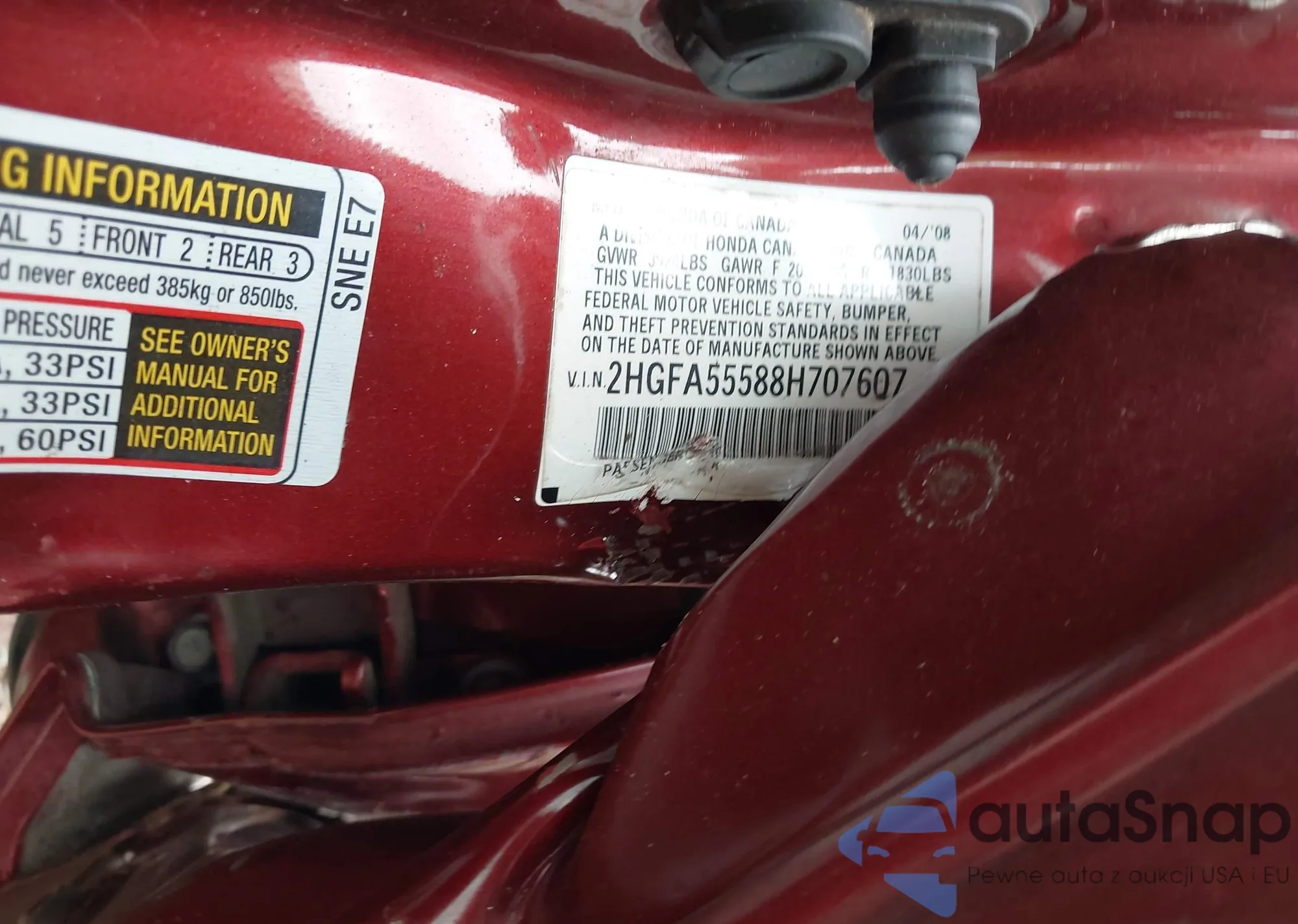 LOT: 43406049 VIN: 2HGFA55588H707607