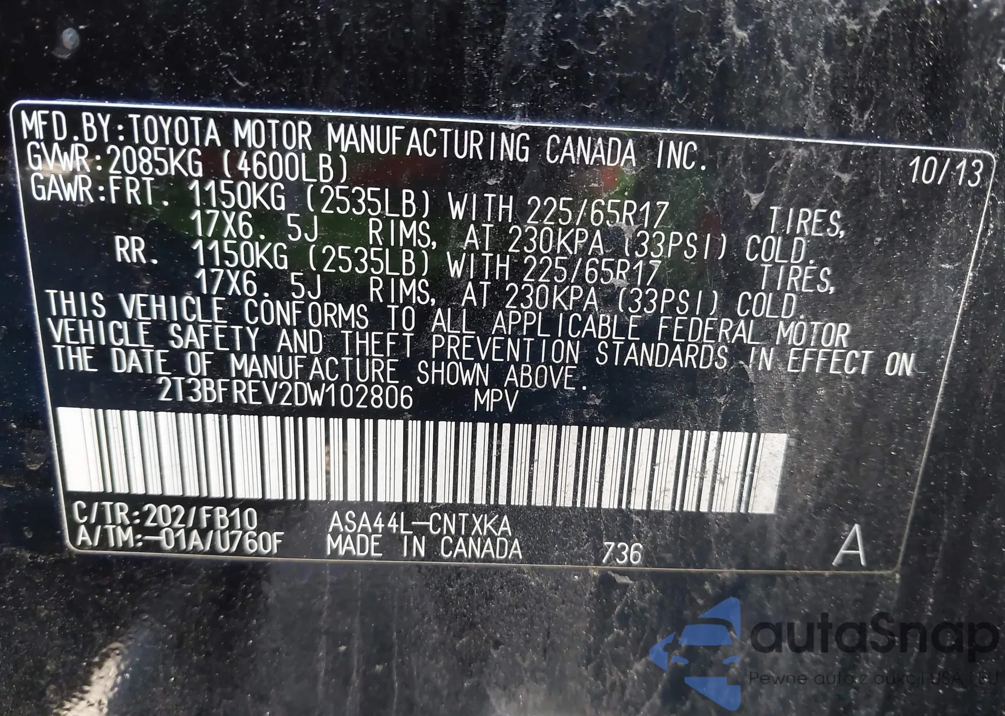 LOT: 43511301 VIN: 2T3W1RFV8LC073875