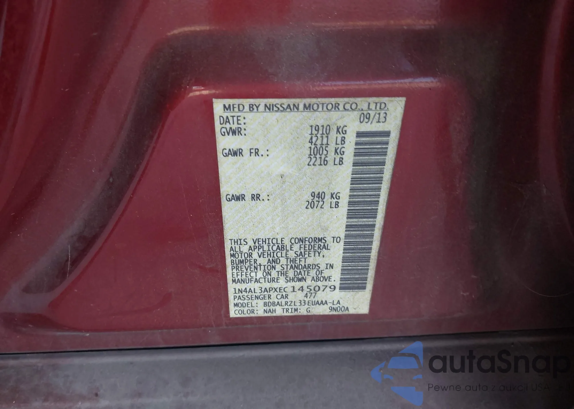 LOT: 43509660 VIN: 1N4AL3APXEC145079