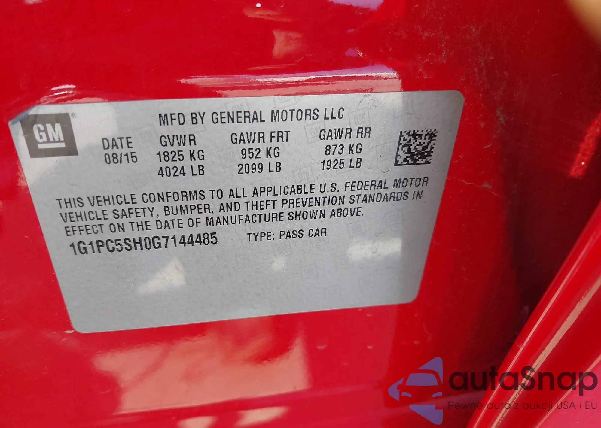 LOT: 43401603 VIN: 1G1PC5SH0G7144485