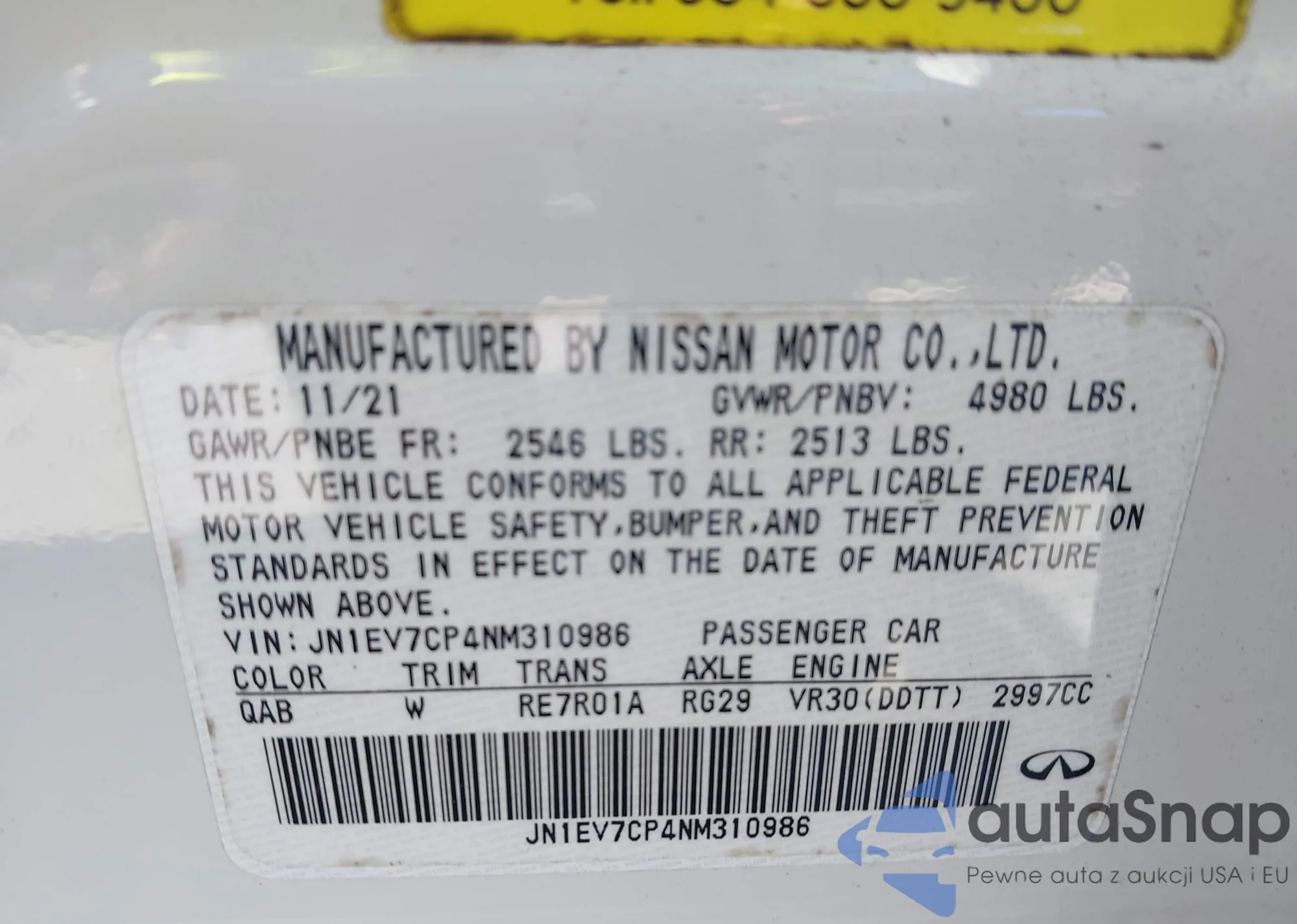 LOT: 43600490 VIN: JN1EV7CP4NM310986