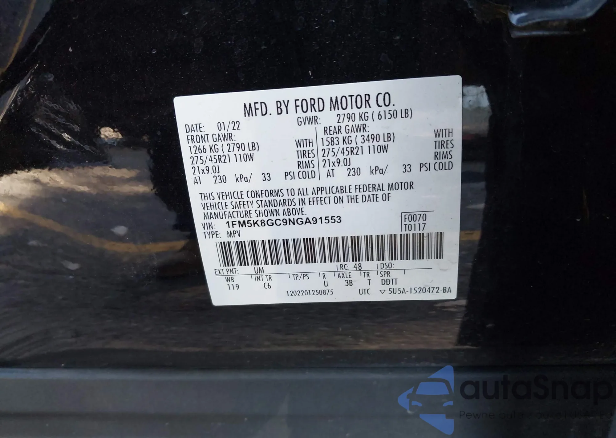 • VIN 1FM5K8GC9NGA91553
