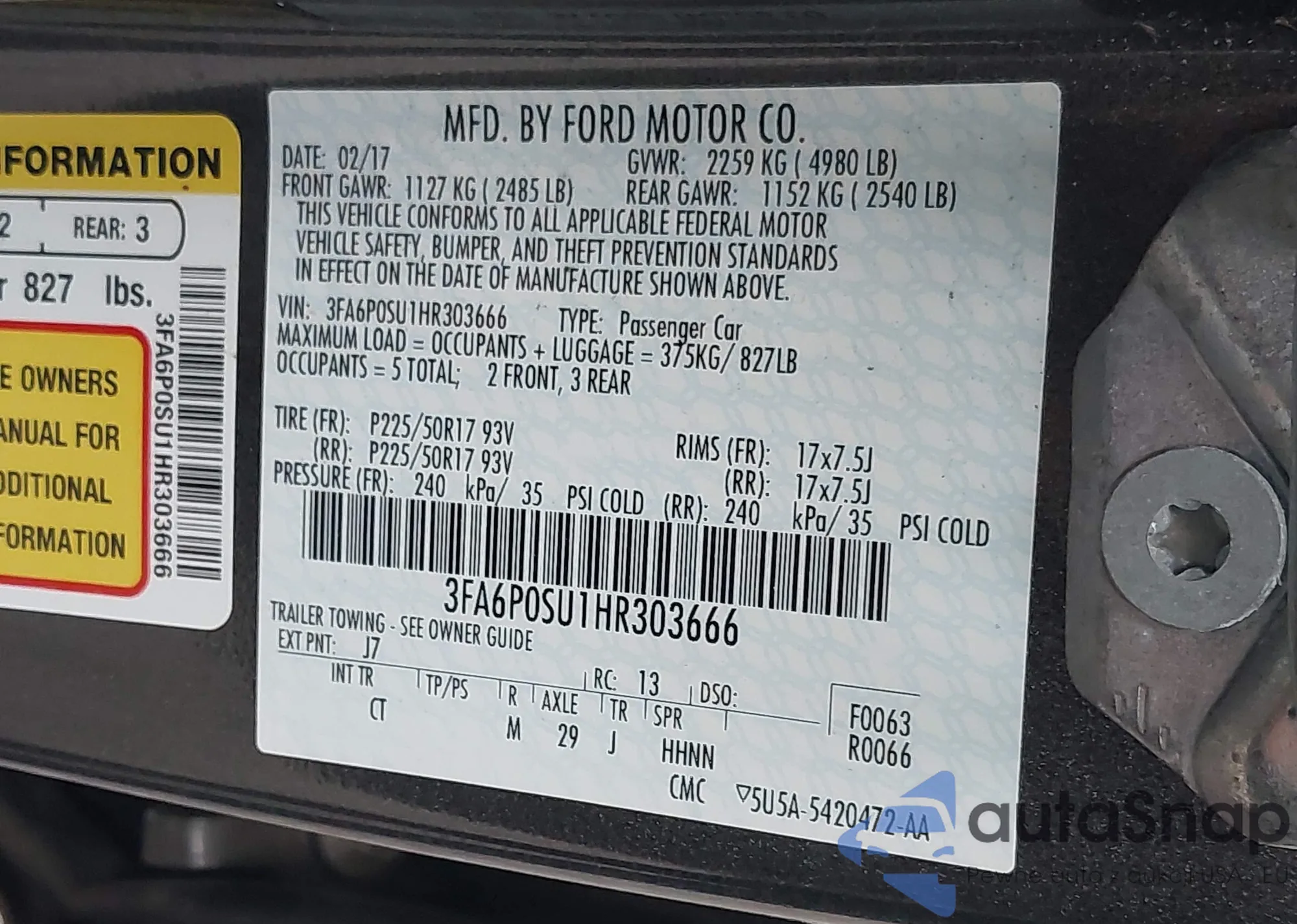• VIN 3FA6P0SU1HR303666