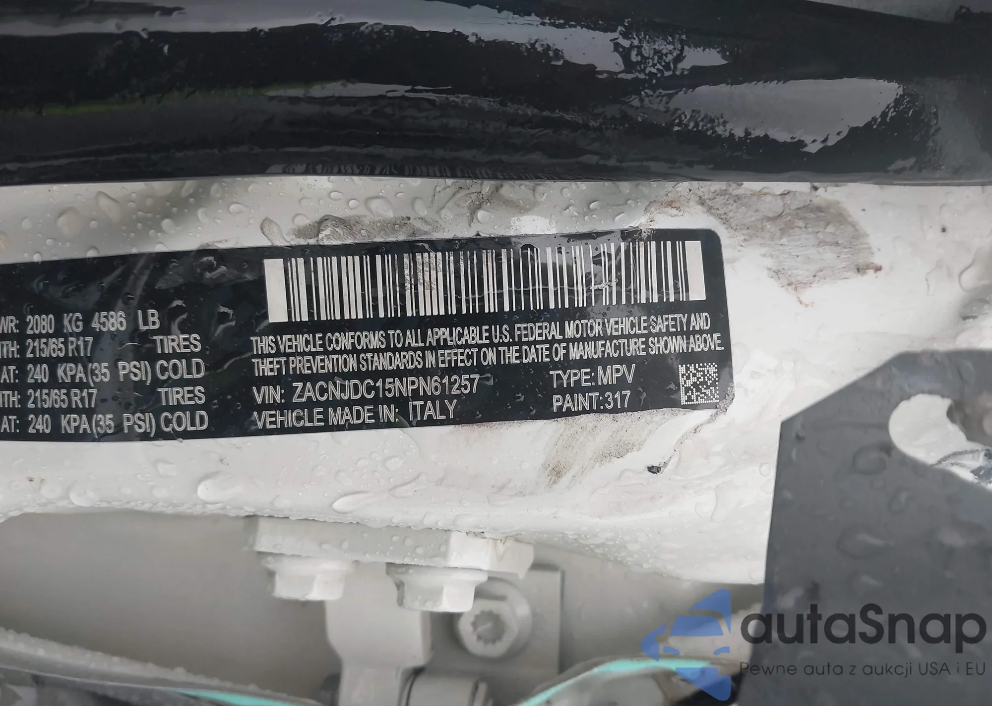 LOT: 43420890 VIN: ZACNJDC15NPN61257