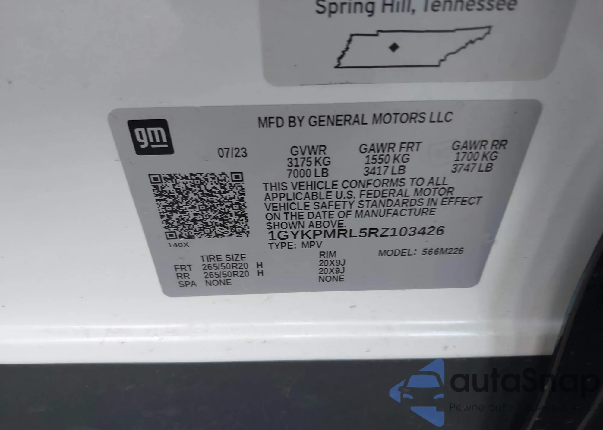 • VIN 1GYKPMRL5RZ103426