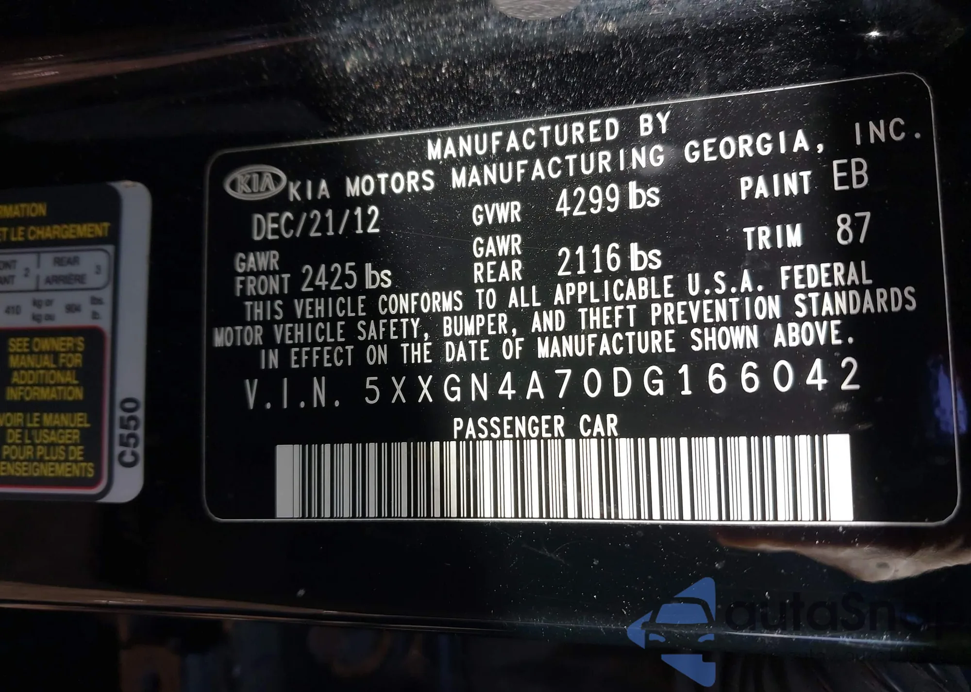 • VIN 5XXGN4A70DG166042