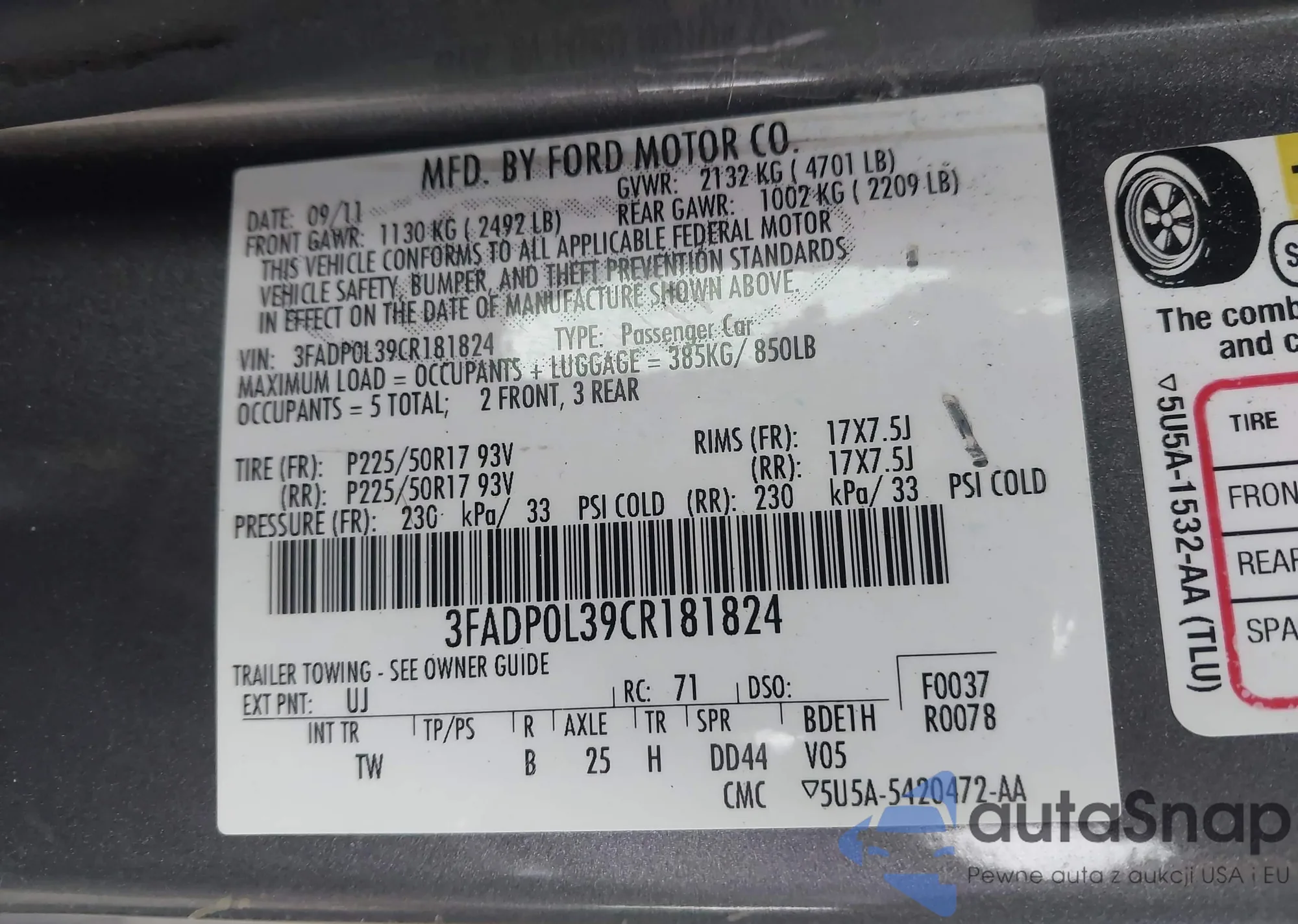 • VIN 3FADP0L39CR181824