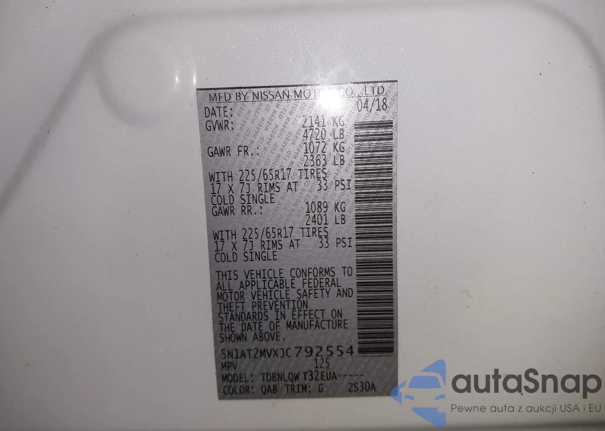 LOT: 43222484 VIN: 5N1AT2MVXJC792554