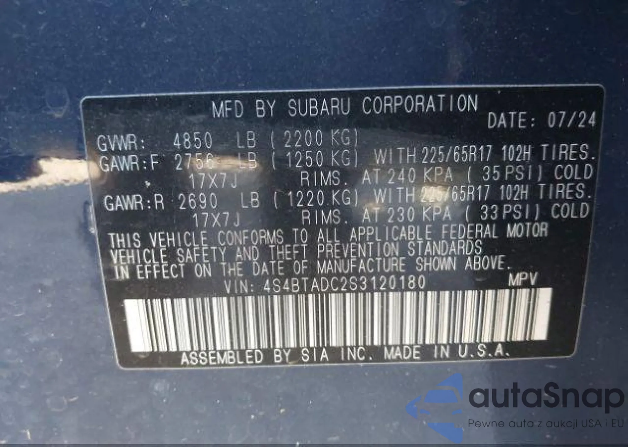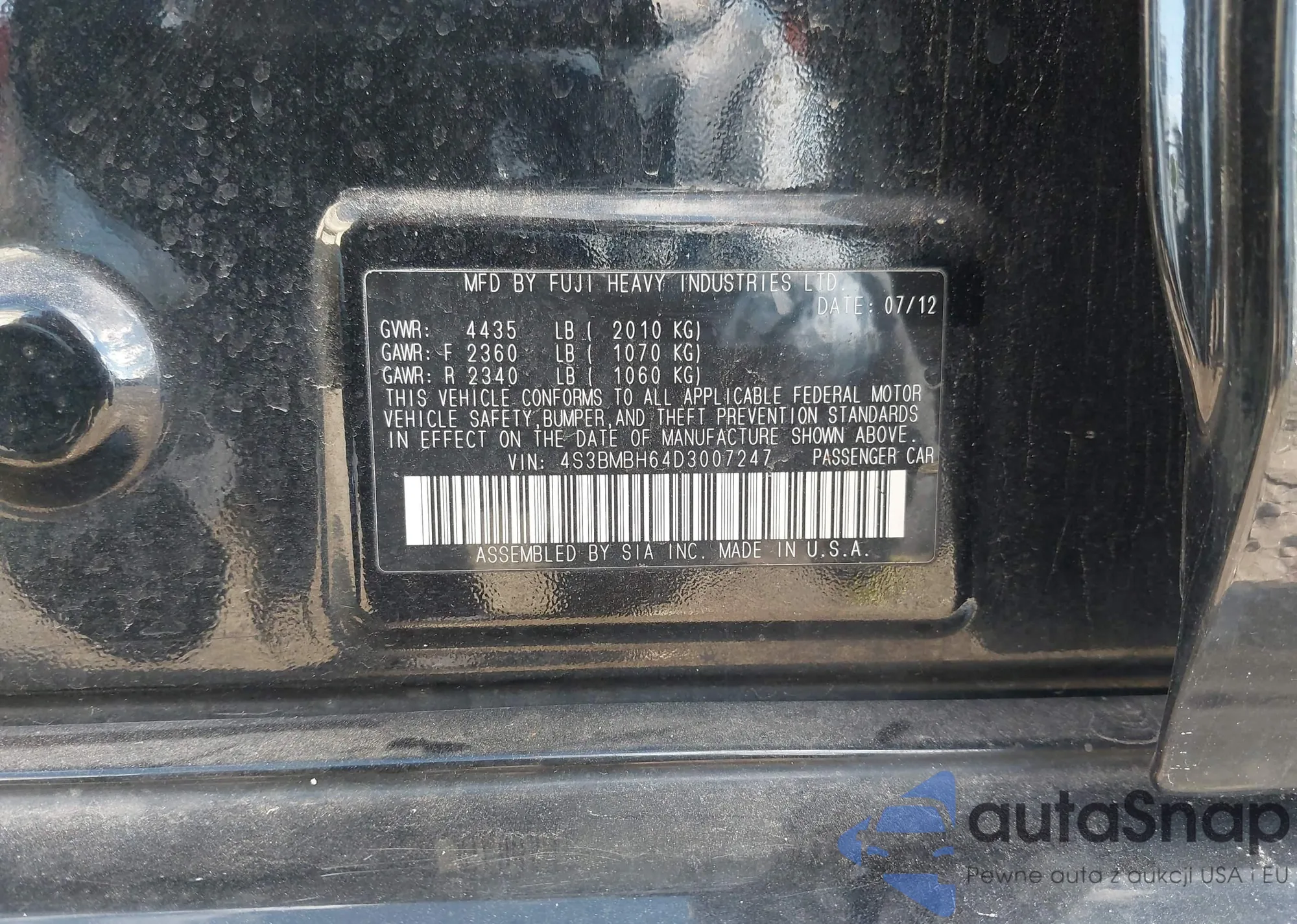 • VIN 4S3BMBH64D3007247