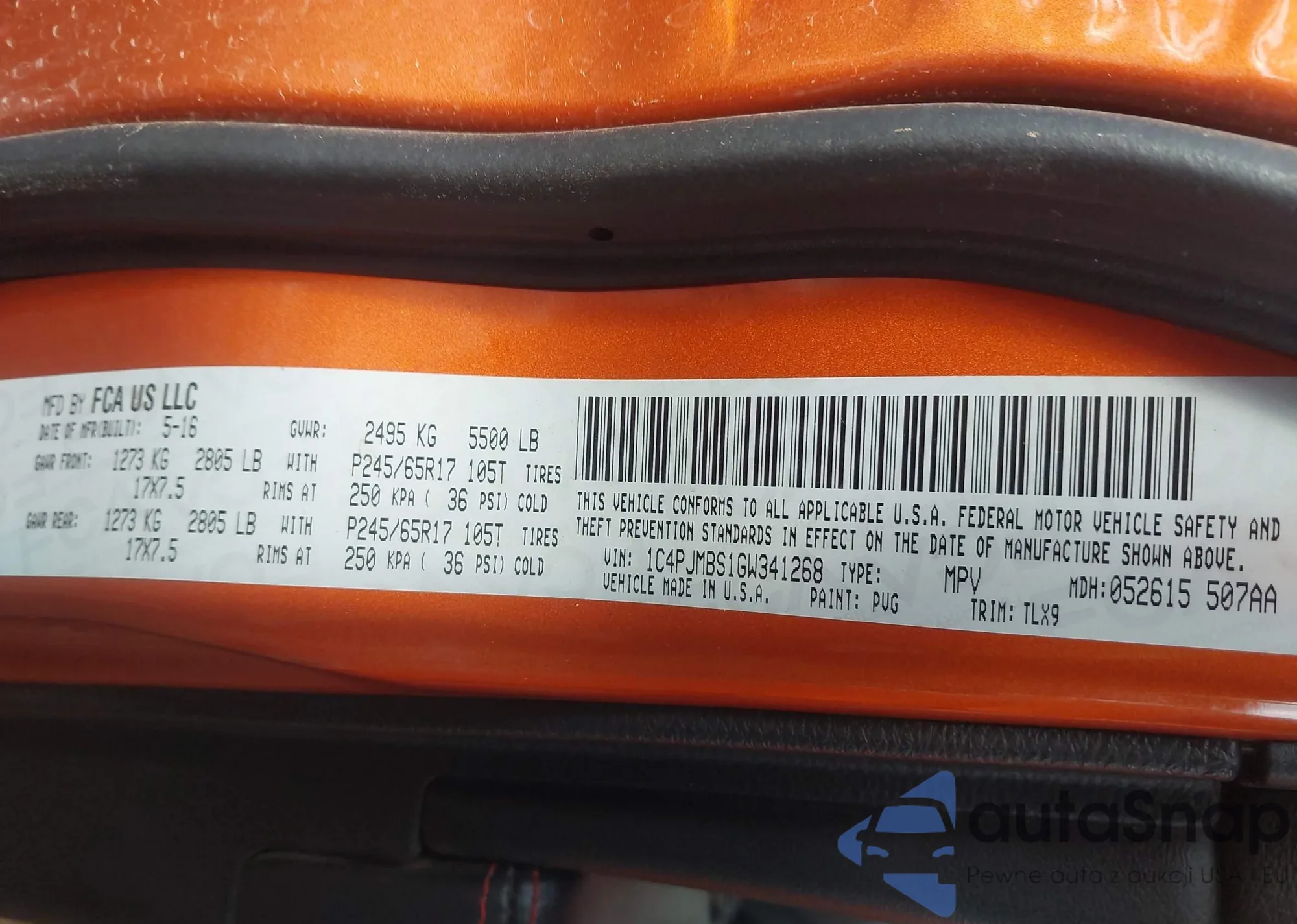 LOT: 43741399 VIN: 1C4PJMBS1GW341268