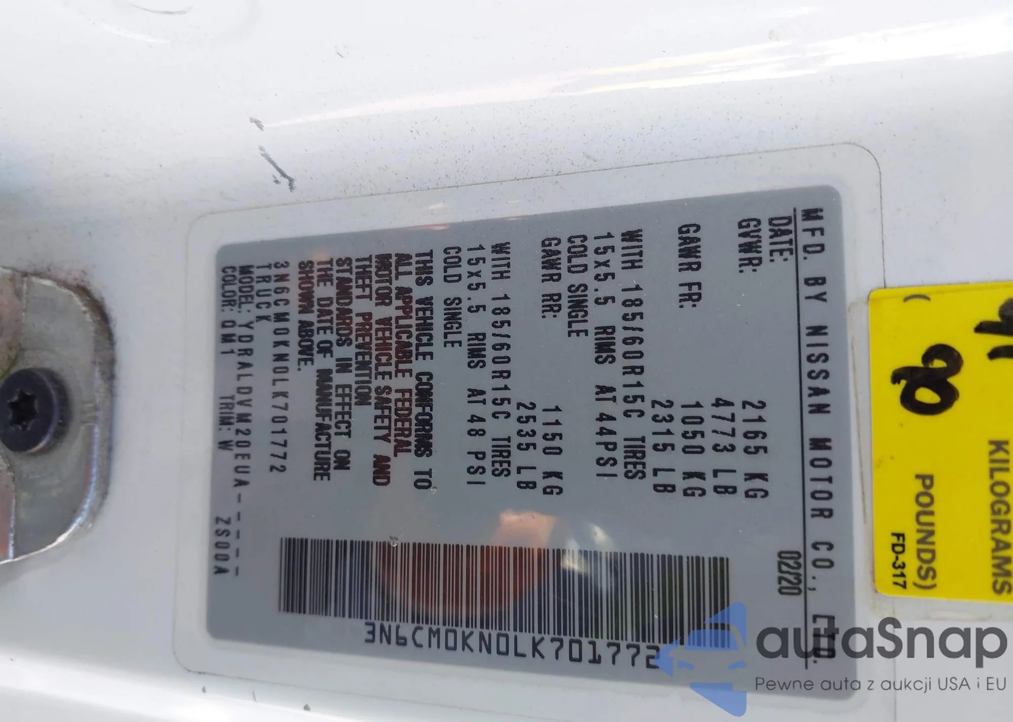 LOT: 43543354 VIN: 3N6CM0KN0LK701772