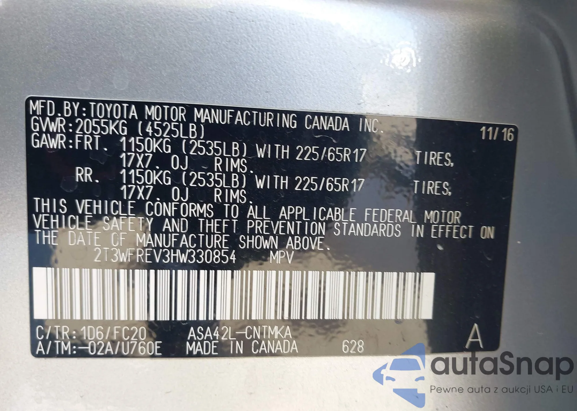 • VIN 2T3WFREV3HW330854