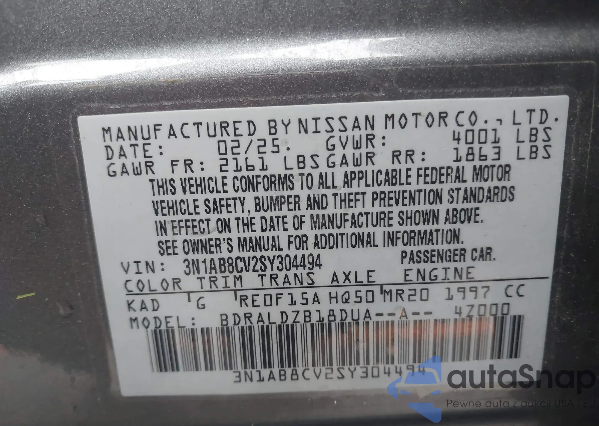 • VIN 3N1AB8CV2SY304494
