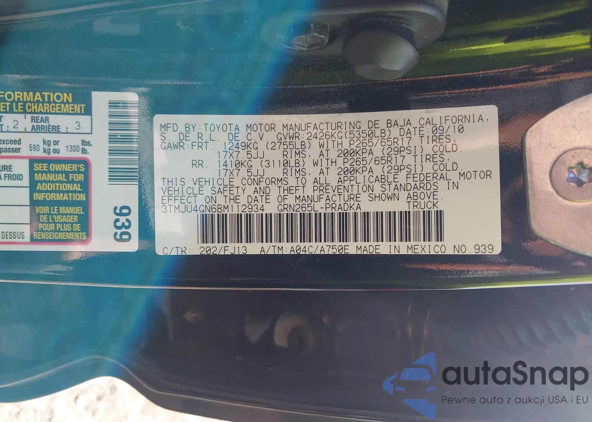 LOT: 43073942 VIN: 3TMJU4GN6BM112934