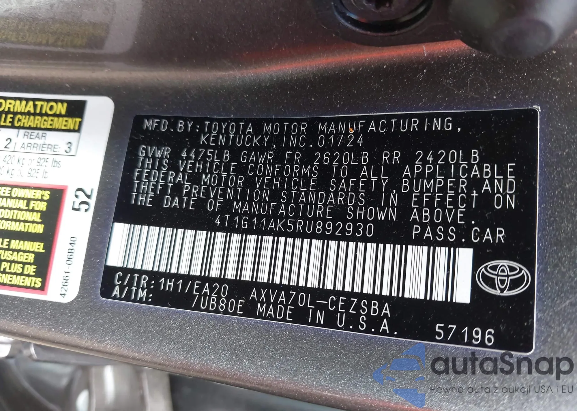 • VIN 4T1G11AK5RU892930
