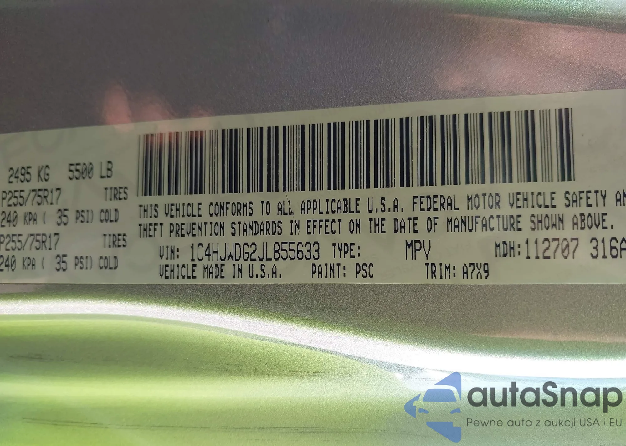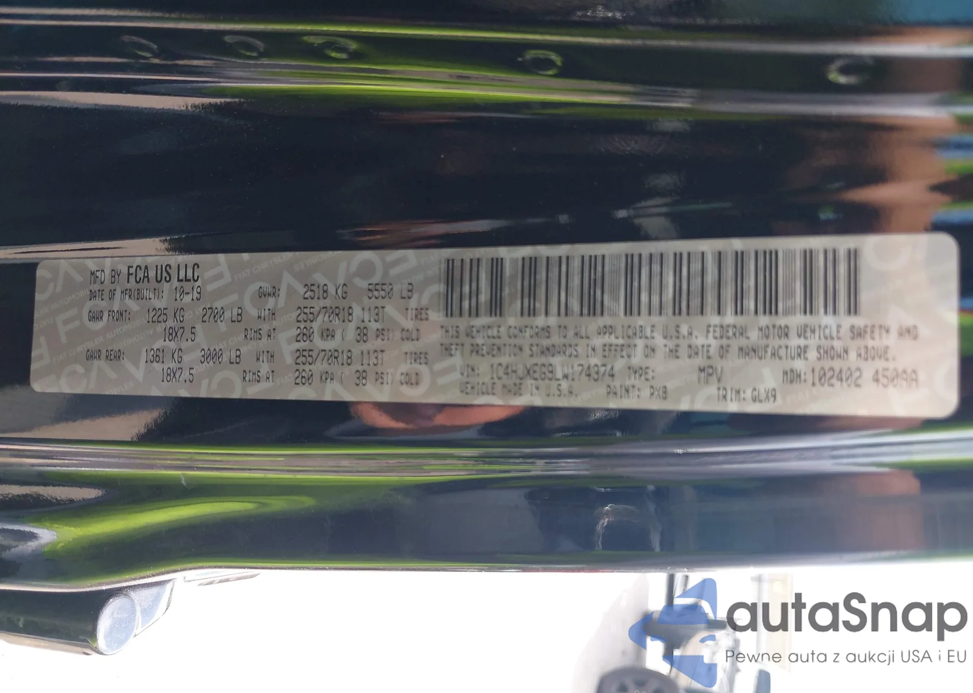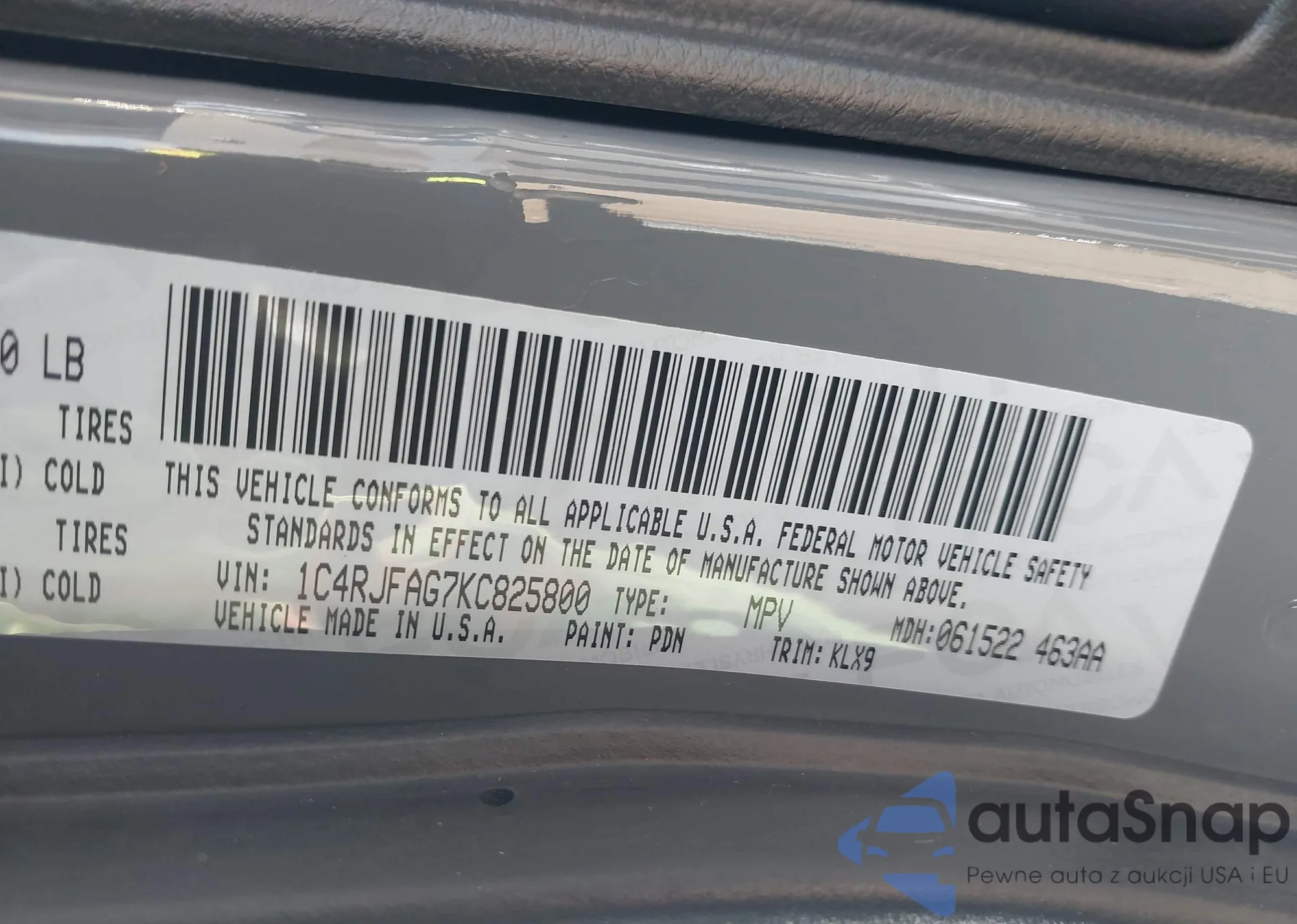 • VIN 1C4RJFAG7KC825800