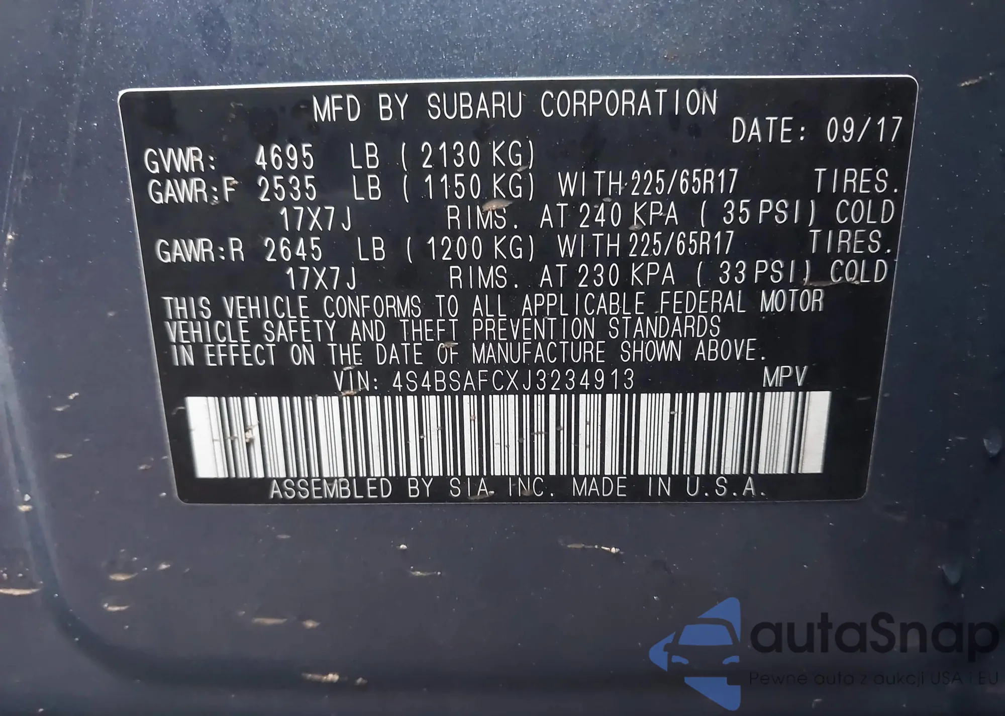 • VIN 4S4BSAFCXJ3234913