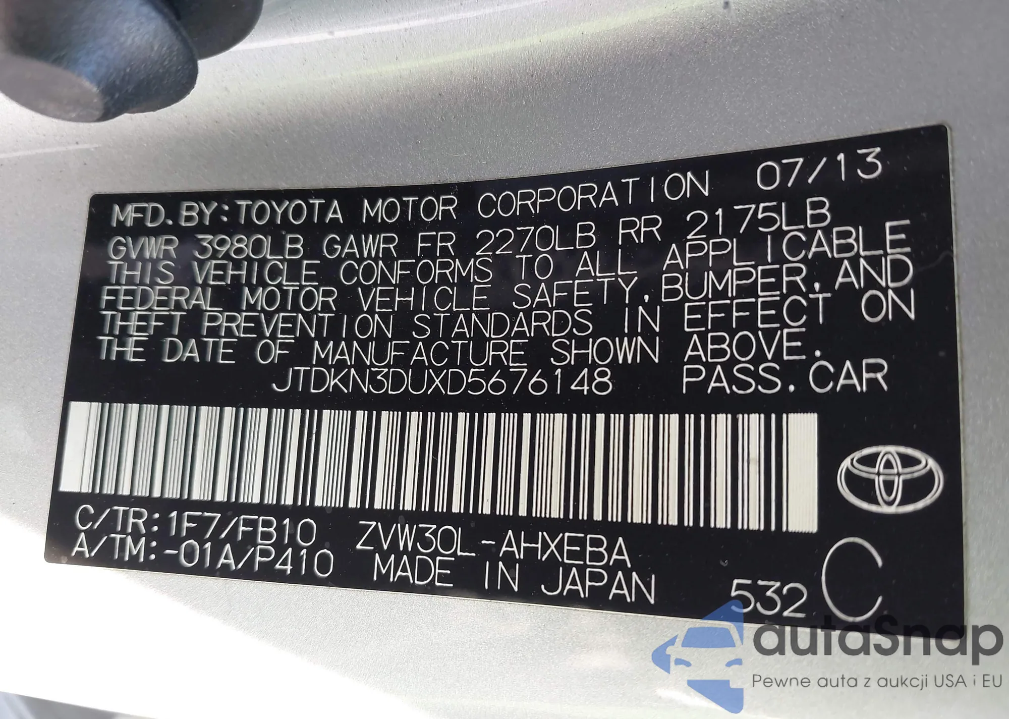 LOT: 43180187 VIN: KNDJ23AU4M7760396